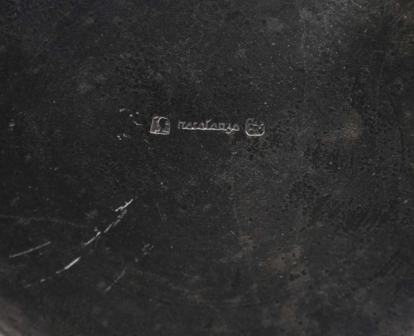 Três peças de prata de lei contrastada, sendo: coador de chá e 2 salvas. Peso total: 330 g (Por motivos de segurança...
