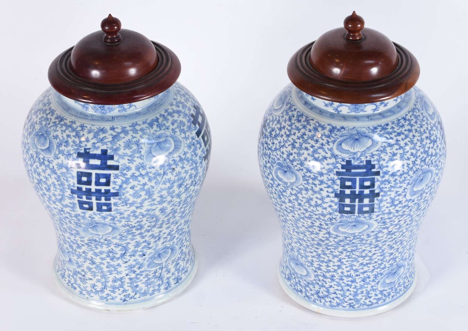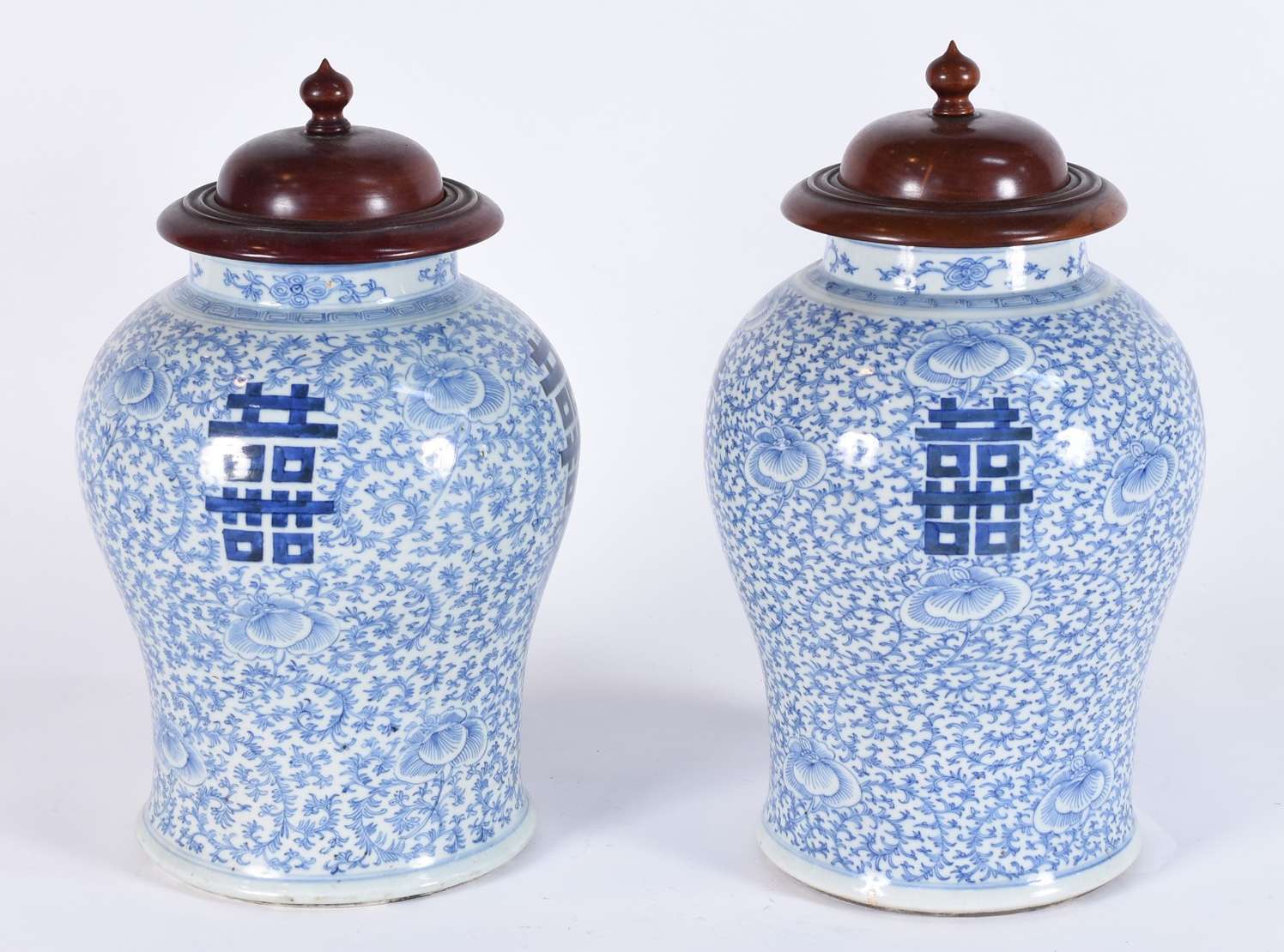 Vaso de porcelana oriental com fundo em azul cobalto decorado com paisagens e pagodes em policromia e guirlandas real...