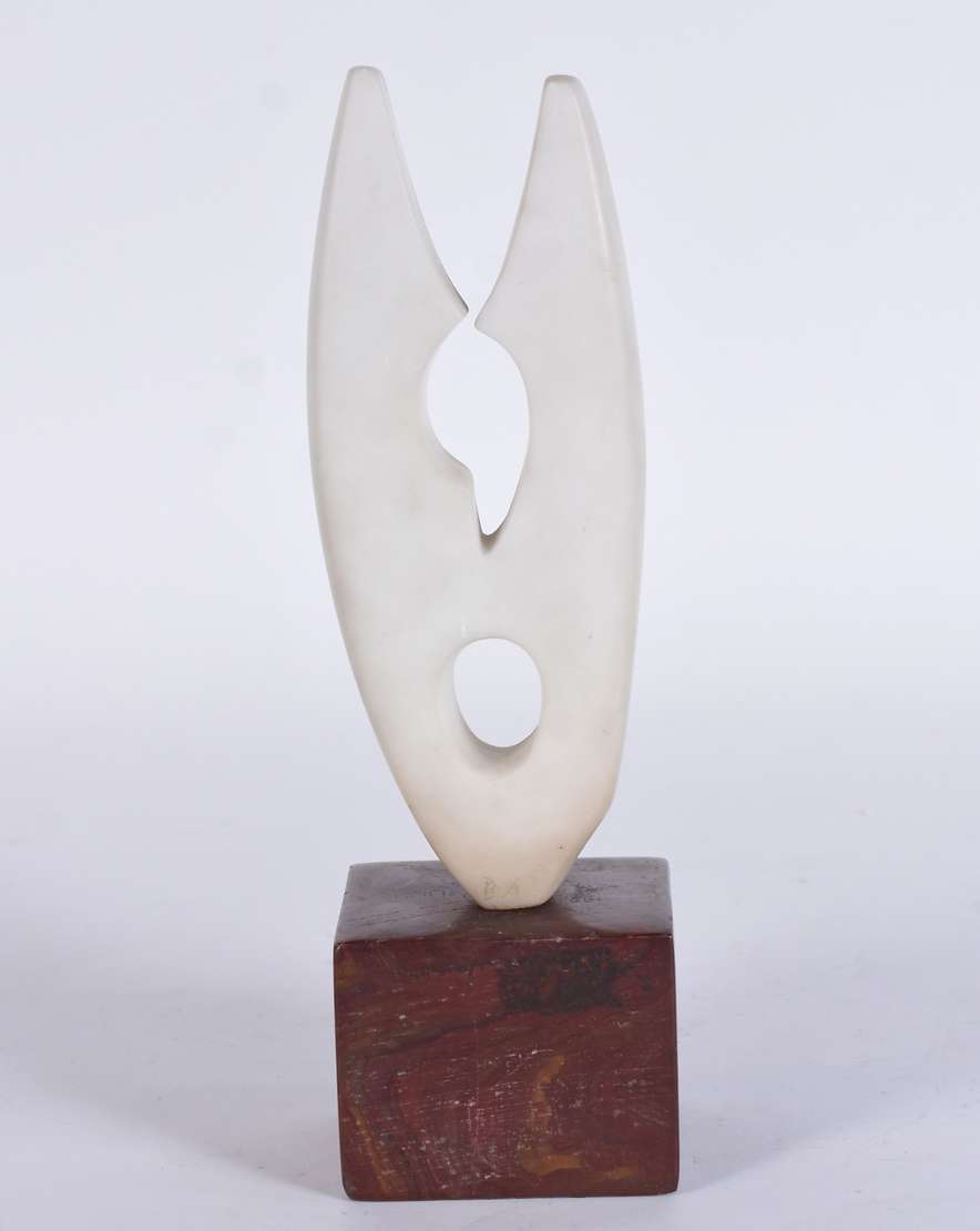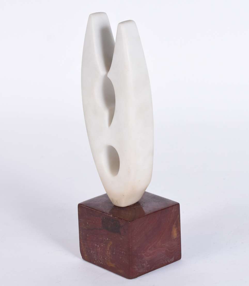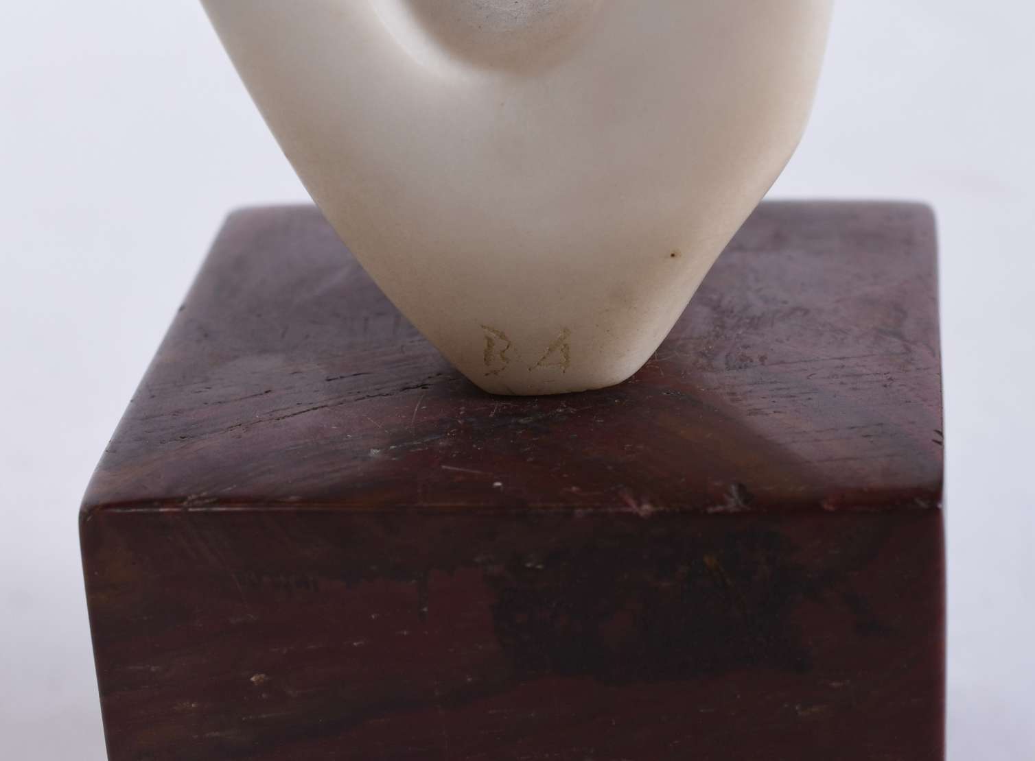 Duas estatuetas de marfim representado rostos femininos, bases de madeira.