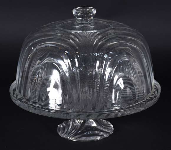 Boleira de vidro trabalhado em frisos arredondados, pé alto.