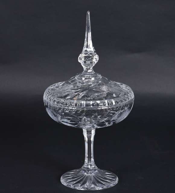 Elegante compoteira de cristal tcheco lapidado.