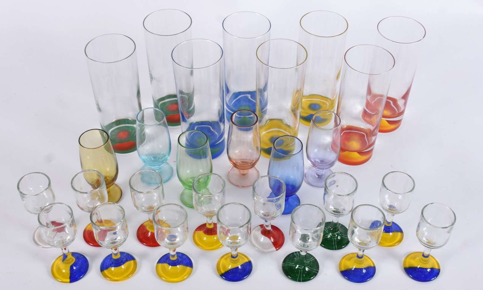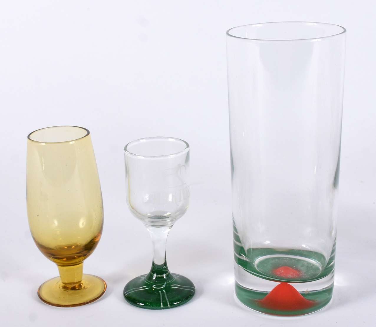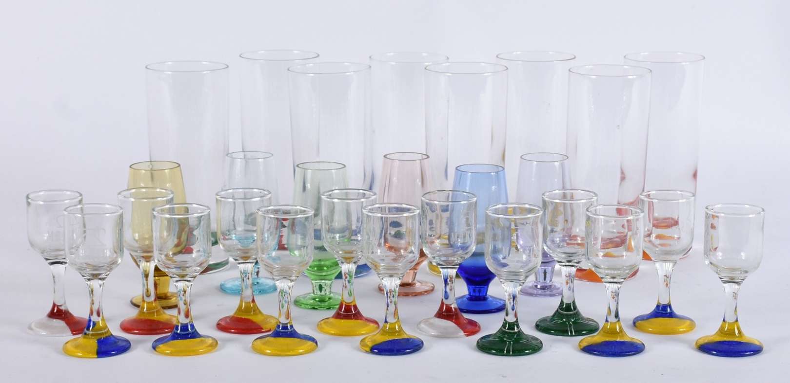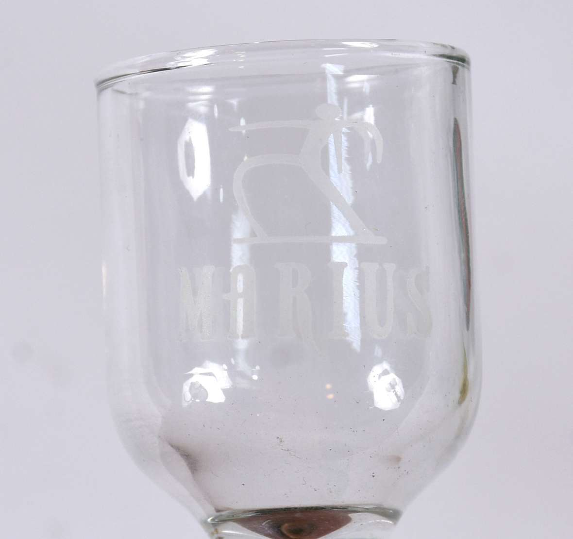 Oito peças de vidro/cristal, sendo suqueira; 5 taças para champagne e 2 colheres para suco.