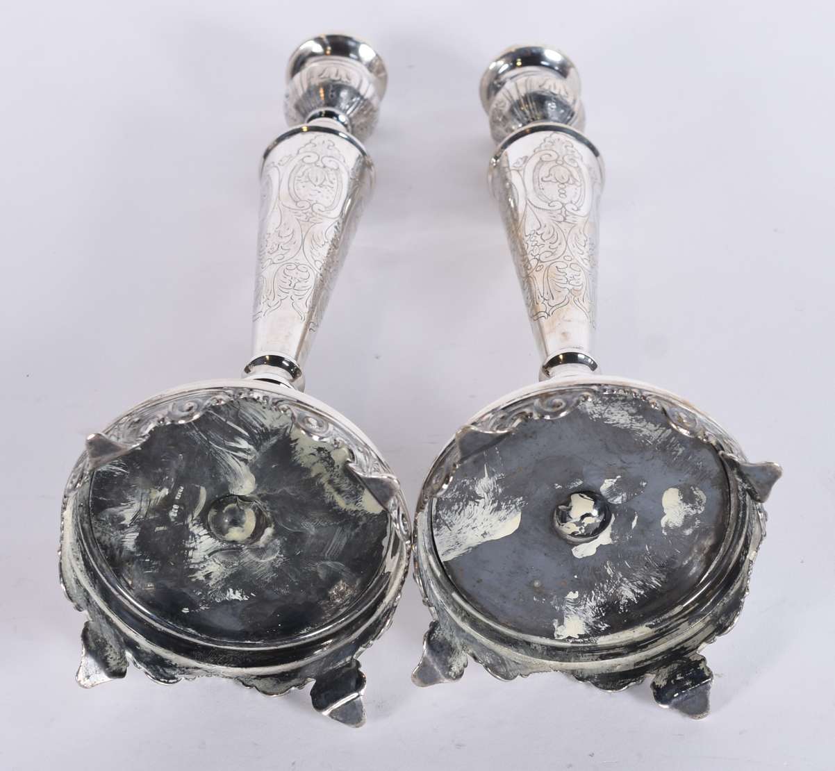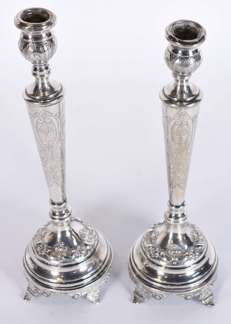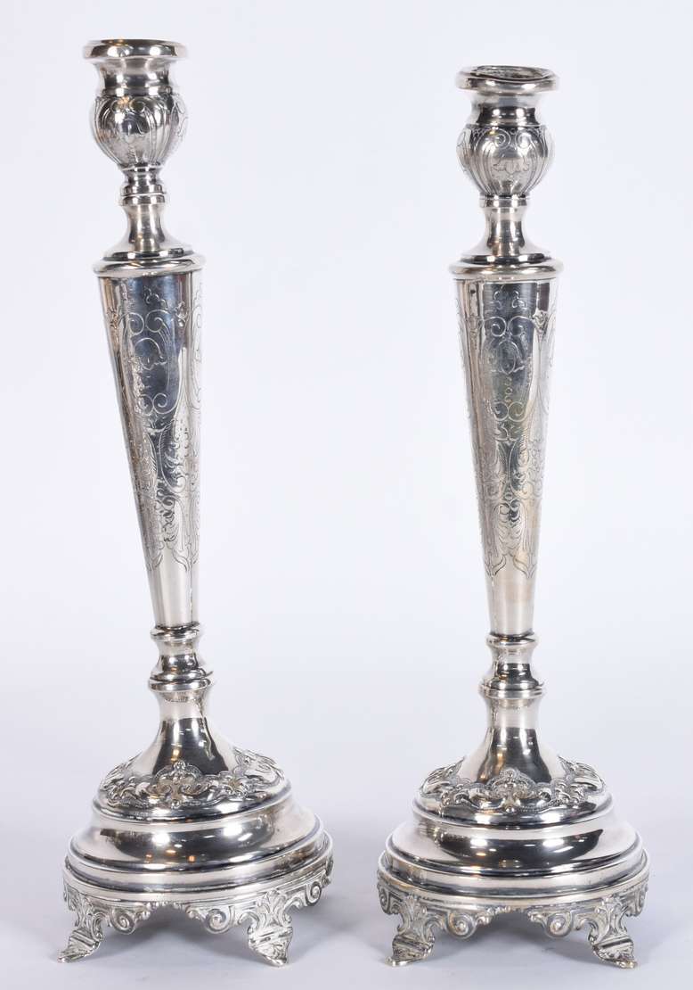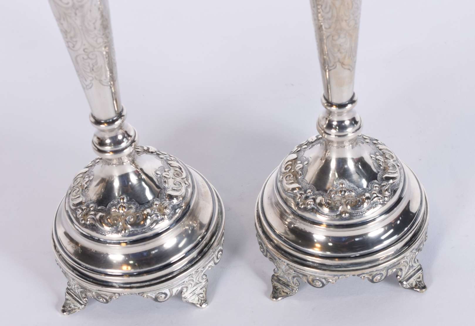Par de castiçais de prata contraste 833 mls (torto). Peso da prata: 480 g (Por motivos de segurança a peça não se en...