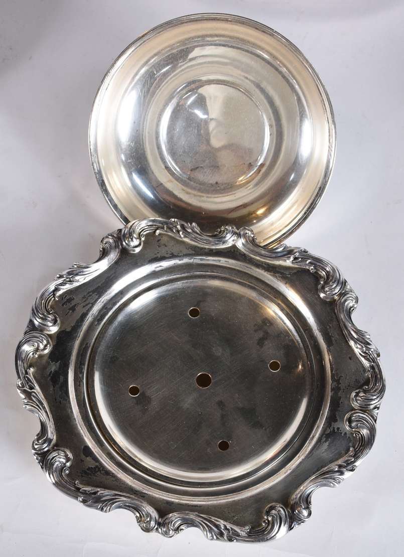 Espevitadeira com berço de prata portuguesa contraste do Porto, decorados com flores em relevo, pés de garra. Peso da...