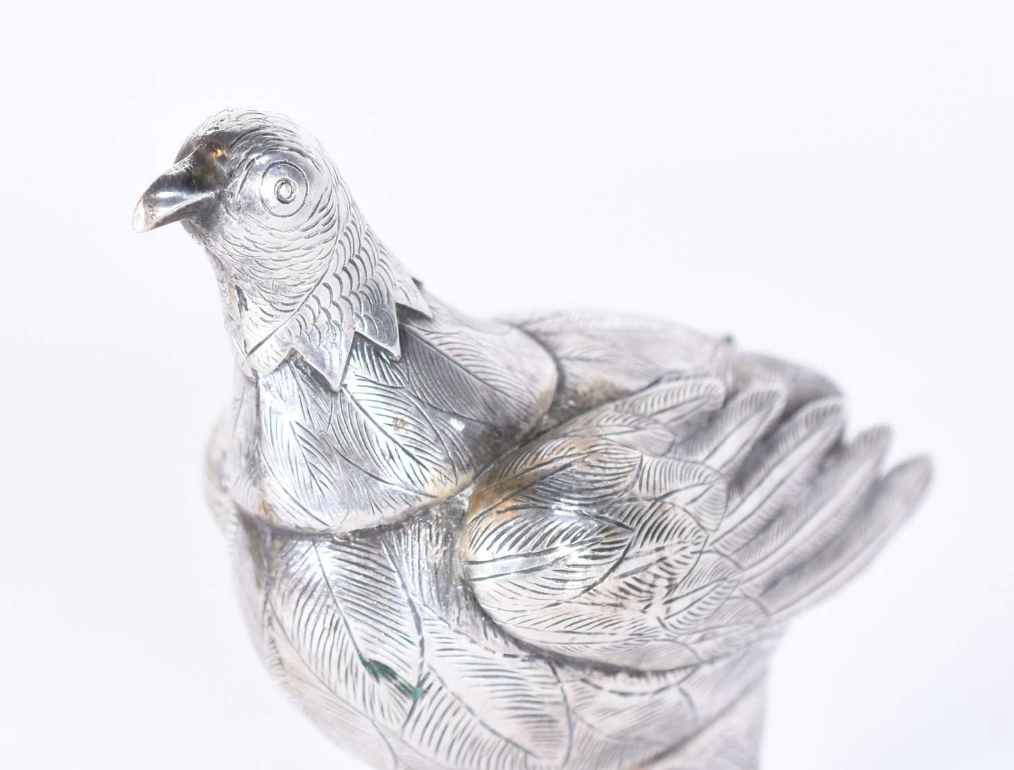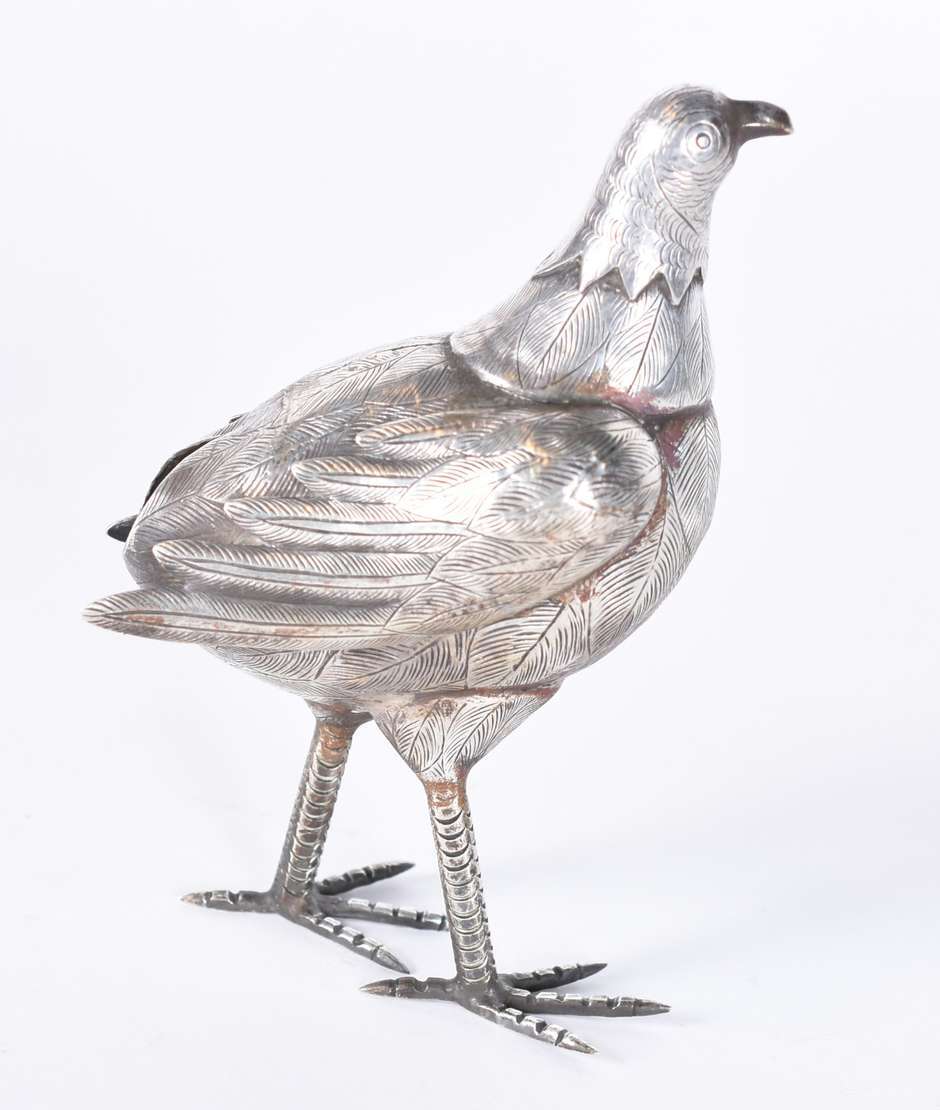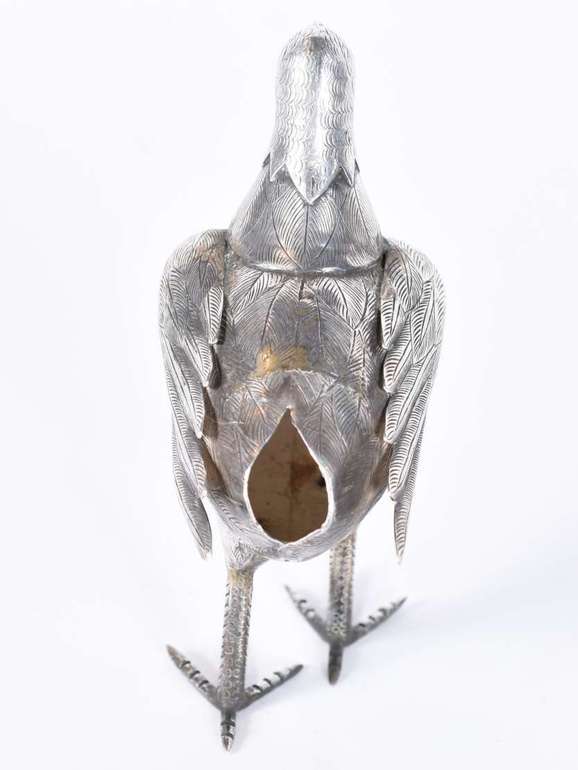 Escultura de prata representando ave, faltando cauda. Peso da prata: 120 g (Por motivos de segurança a peça não se encontra na loja)