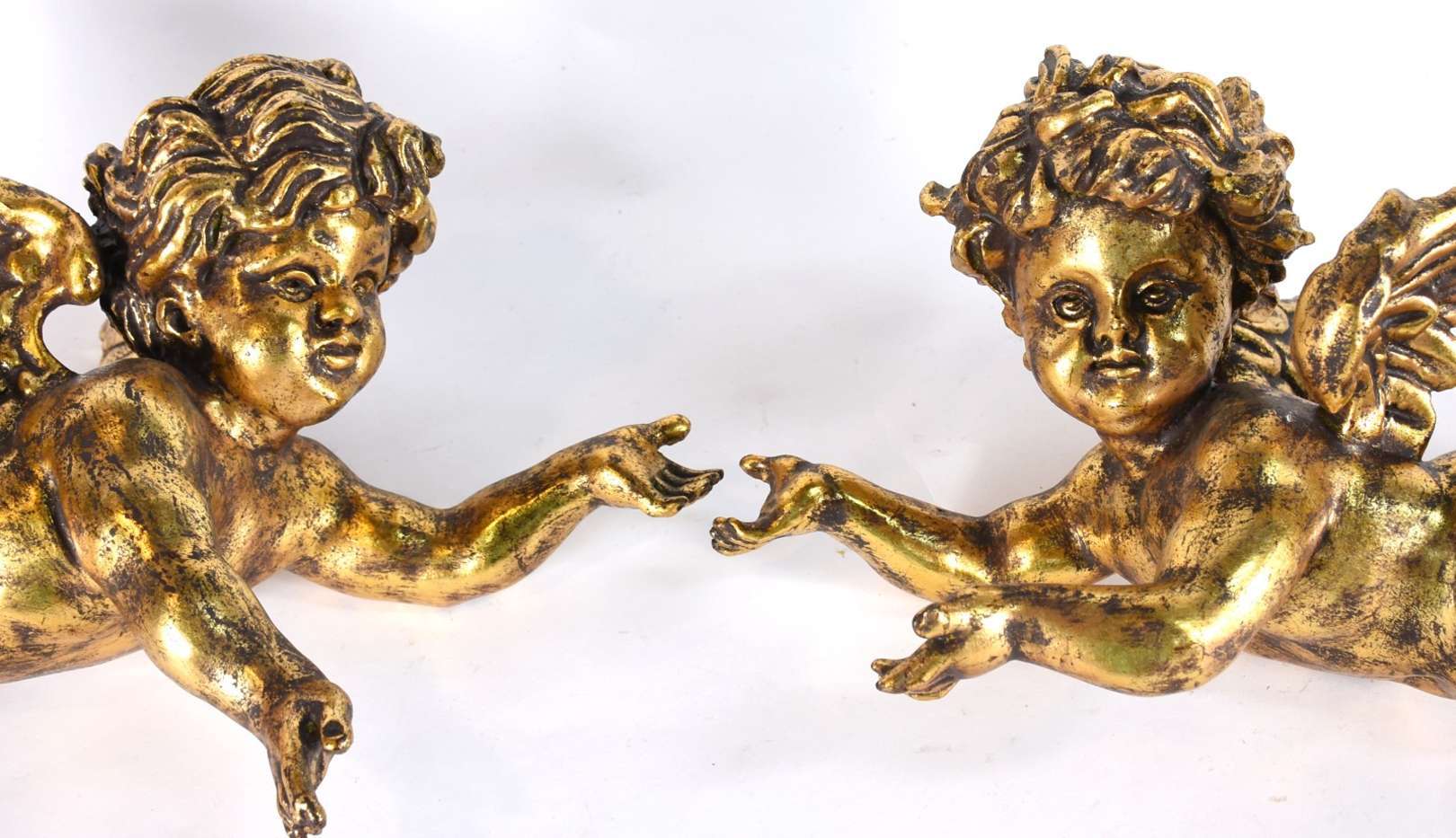 Quatro estatuetas decorativas de resina policromada representando banhistas, um braço colado e pequenos defeitos.