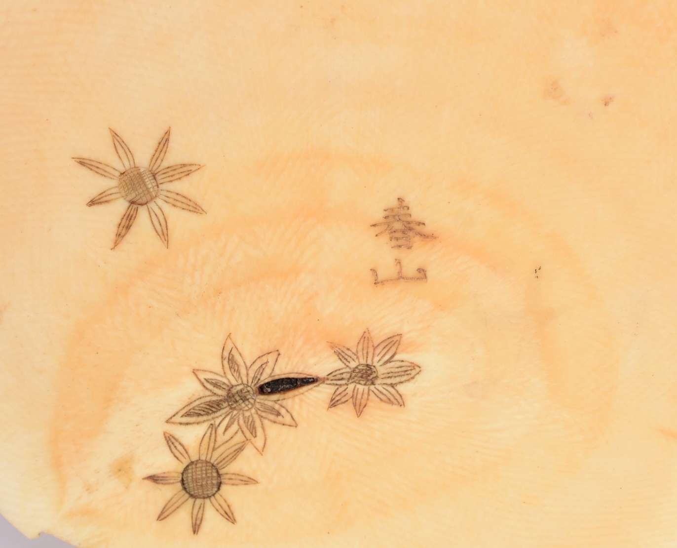 Duas estatuetas de marfim representado rostos femininos, bases de madeira.