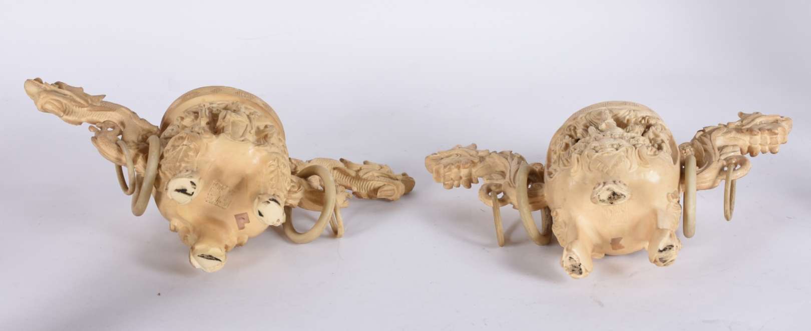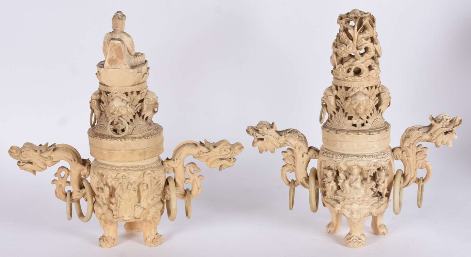 Par de urnas com tampas em porcelana europeia, de formato balaústre, ornadas em esmaltes policromados com flores e fr...