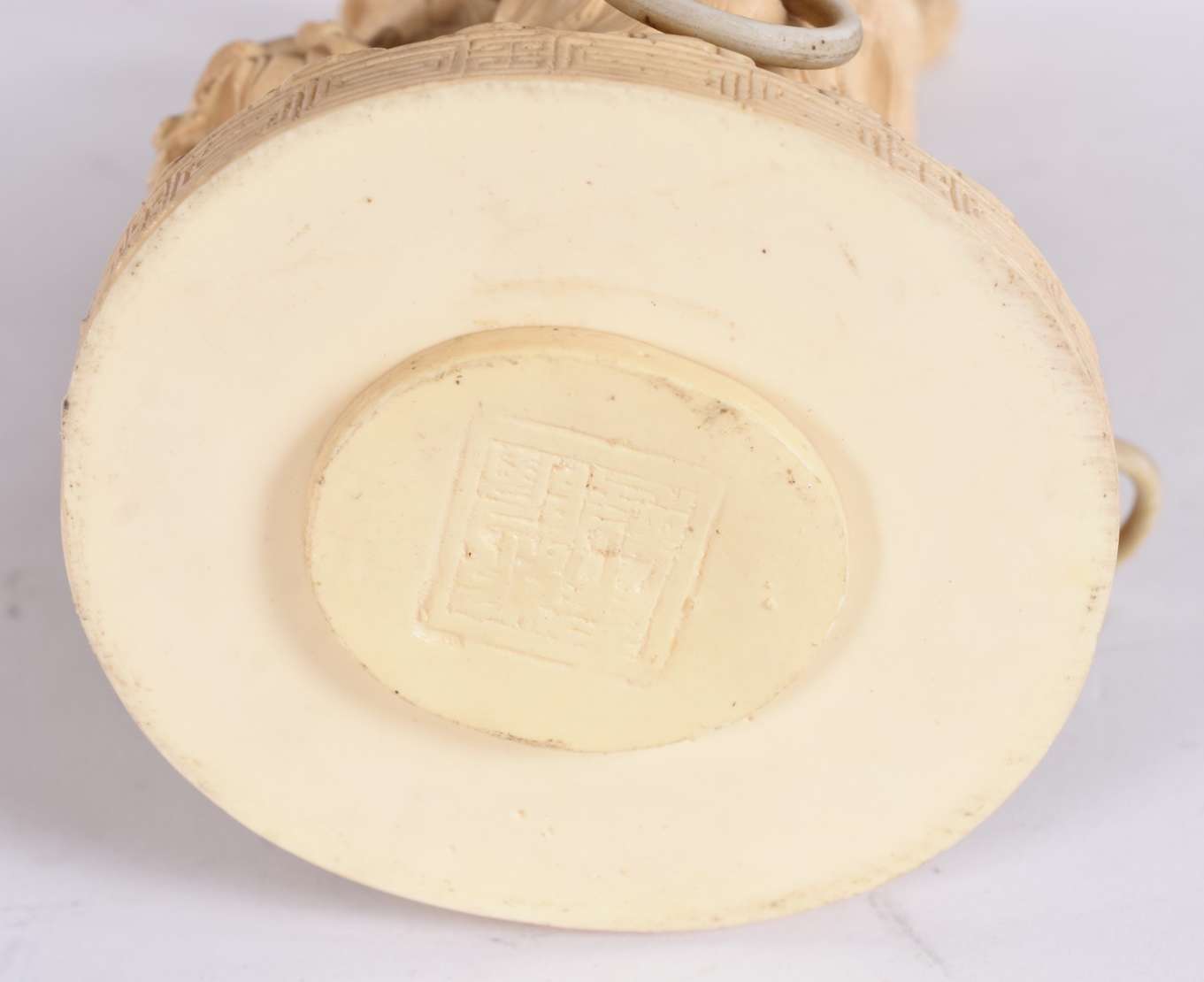 Vaso de porcelana oriental com fundo em azul cobalto decorado com paisagens e pagodes em policromia e guirlandas real...