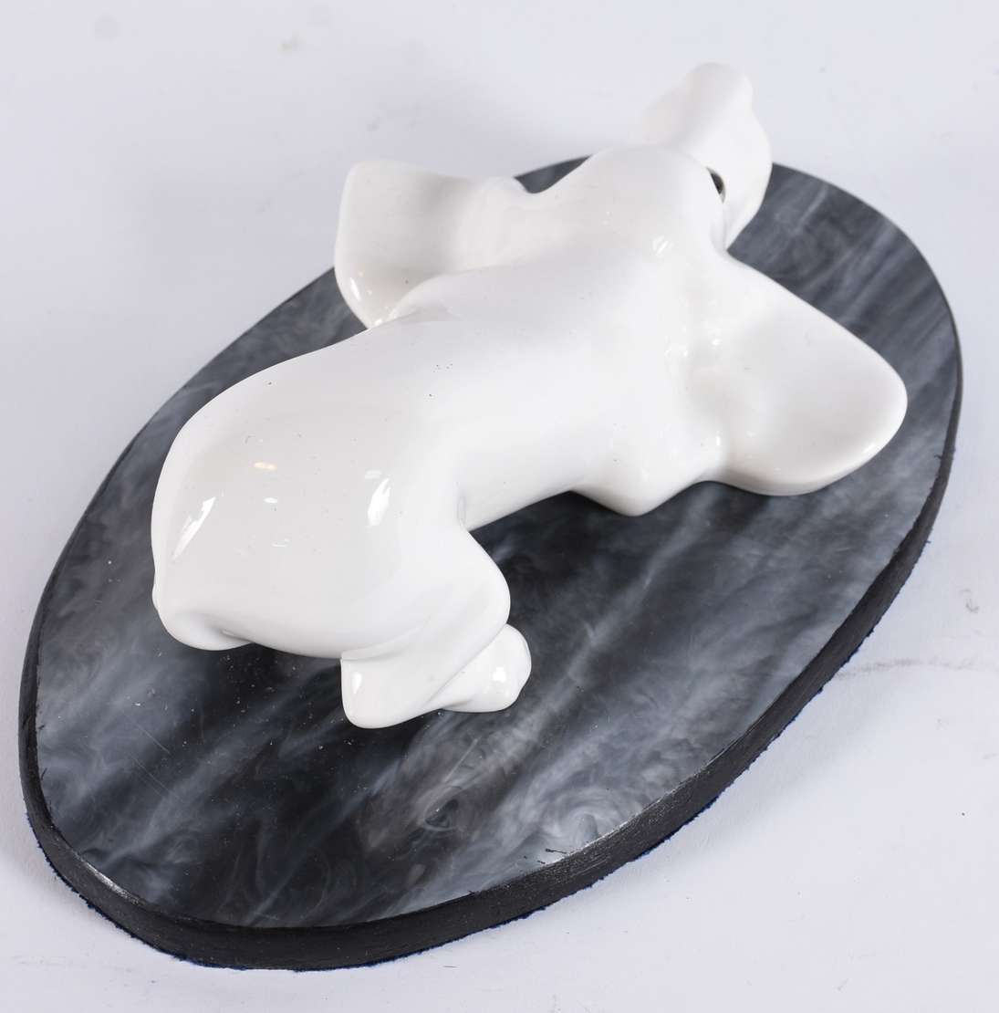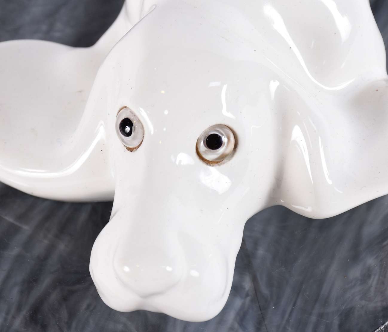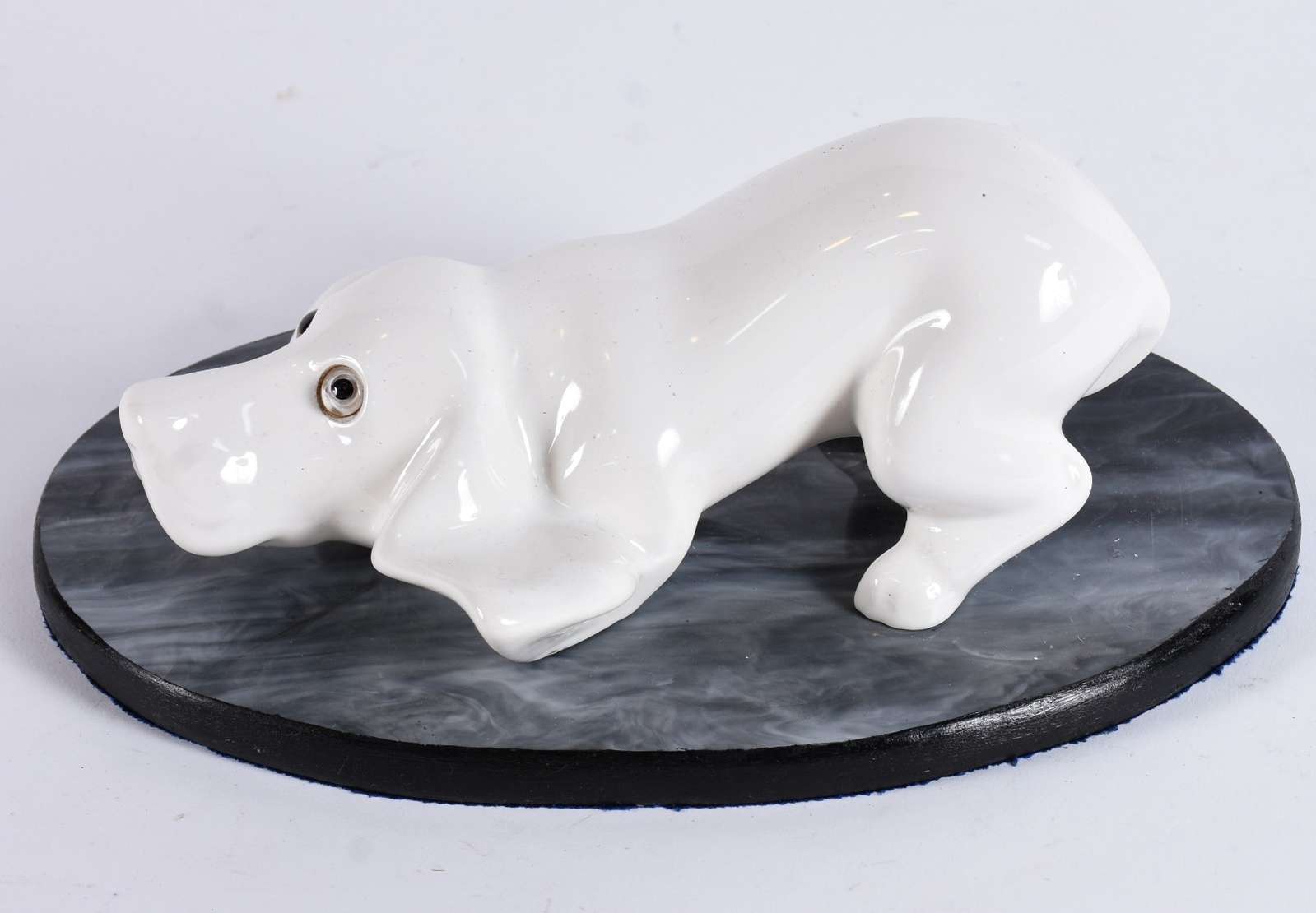 Estatueta de porcelana representando Basset, olhos de opalina.