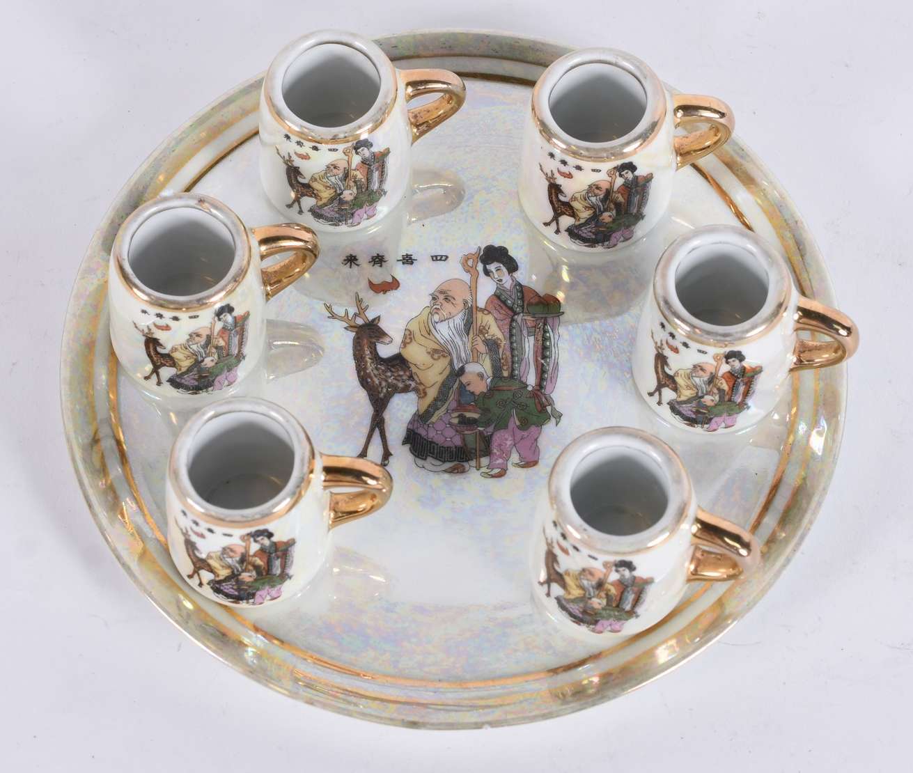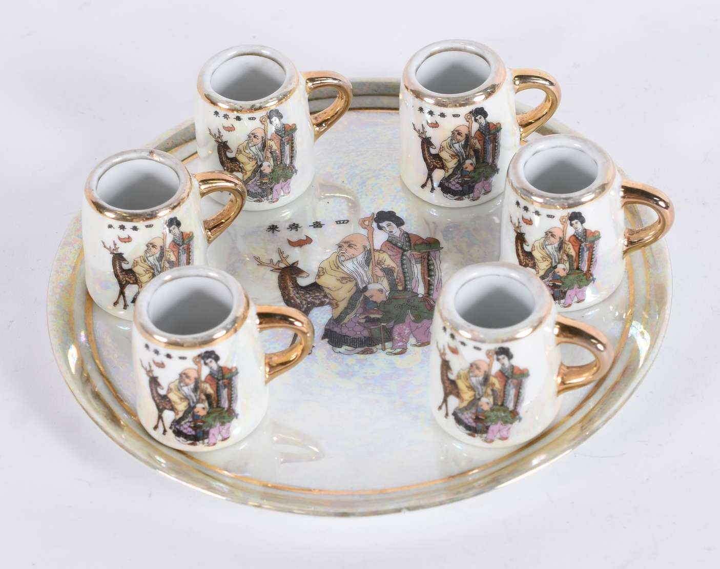 Oito peças de vidro/cristal, sendo suqueira; 5 taças para champagne e 2 colheres para suco.