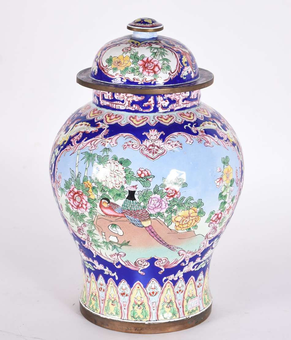 Duas peças de porcelana oriental policromada, sendo: bowl e potiche.