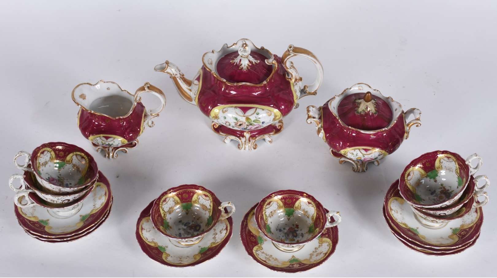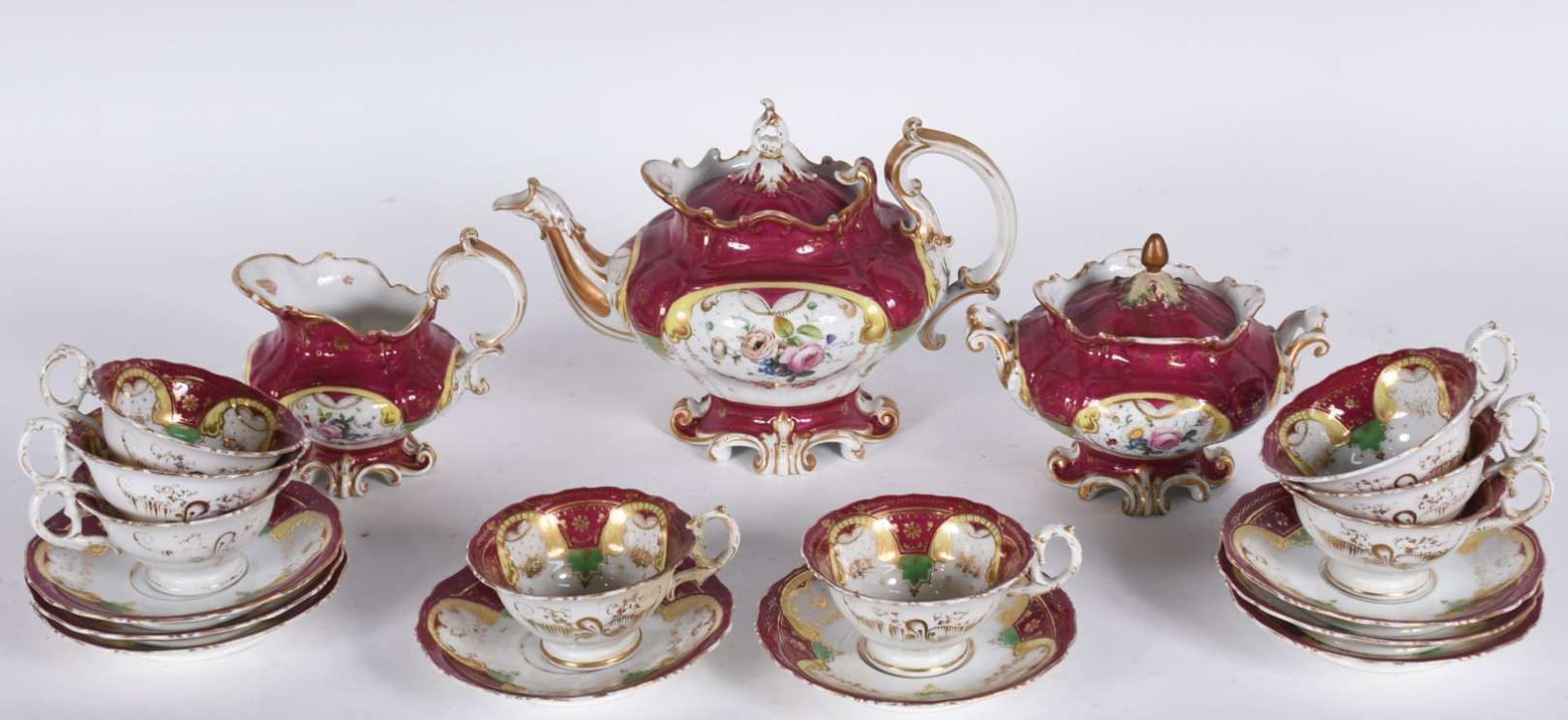 Aparelho de chá de porcelana Rozenthal composto de: 11 xícaras com pires, leiteira, bule e açucareiro. Total:14 peças.