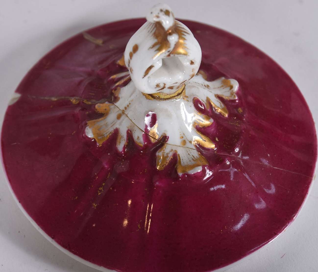 Fruteira de cristal frances lapidado, feitio oval, bordas em gomos, base separada com quatro pés recurvos, fundo com ...