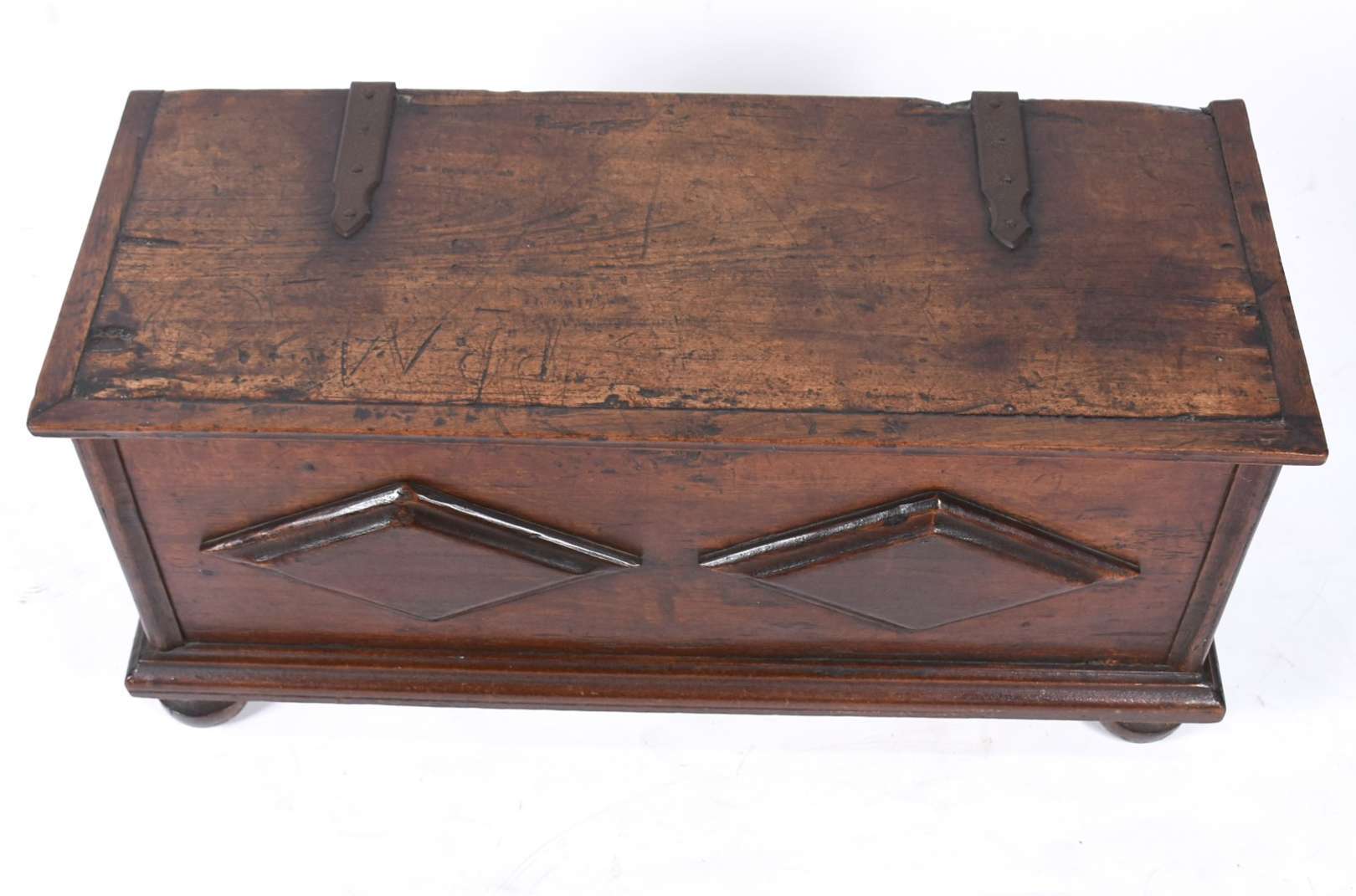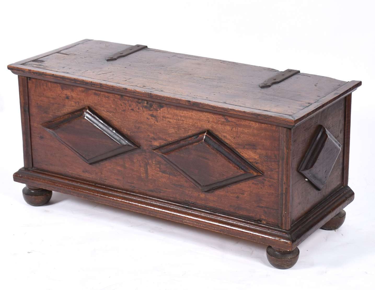 Mesa de apresentação de madeira nobre, estilo Luis Felipe, borda recortada com tampo de mármore, apoio em quatro pern...