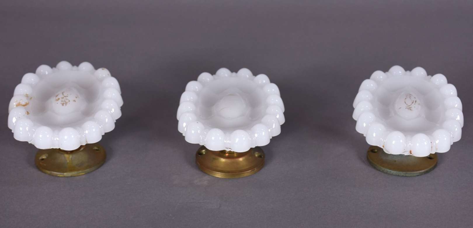 Três pequenas peças sacras, sendo: Cristo crucificado em metal dourado; placa com rosto de Cristo de metal; e, peque...