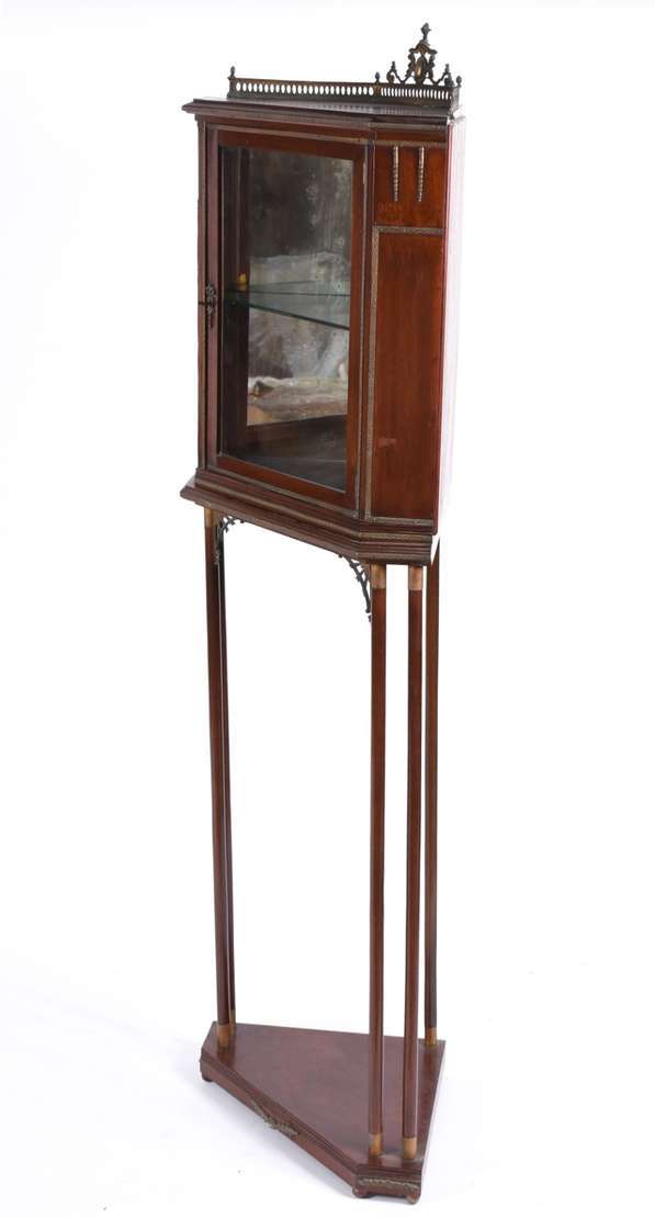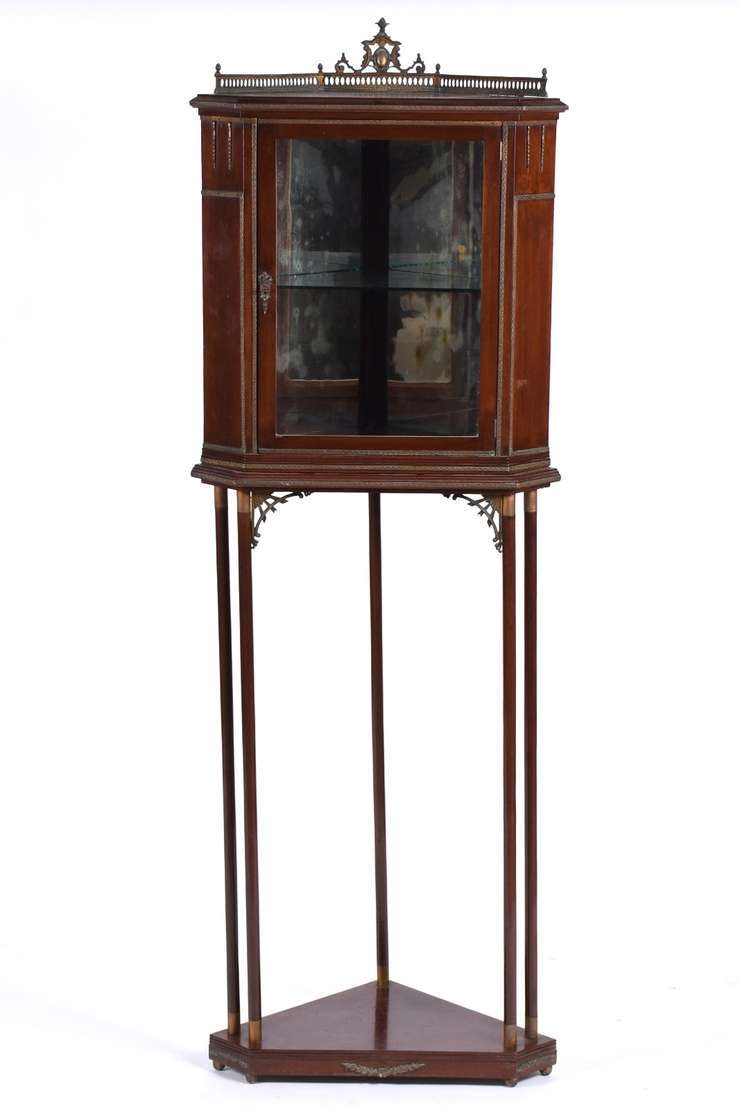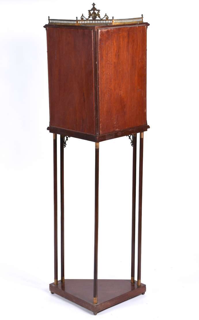 Mesa de apresentação de madeira nobre, estilo Luis Felipe, borda recortada com tampo de mármore, apoio em quatro pern...