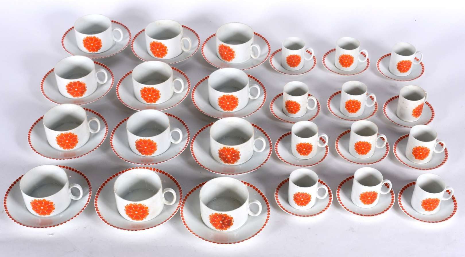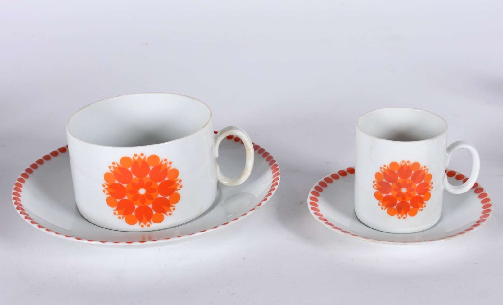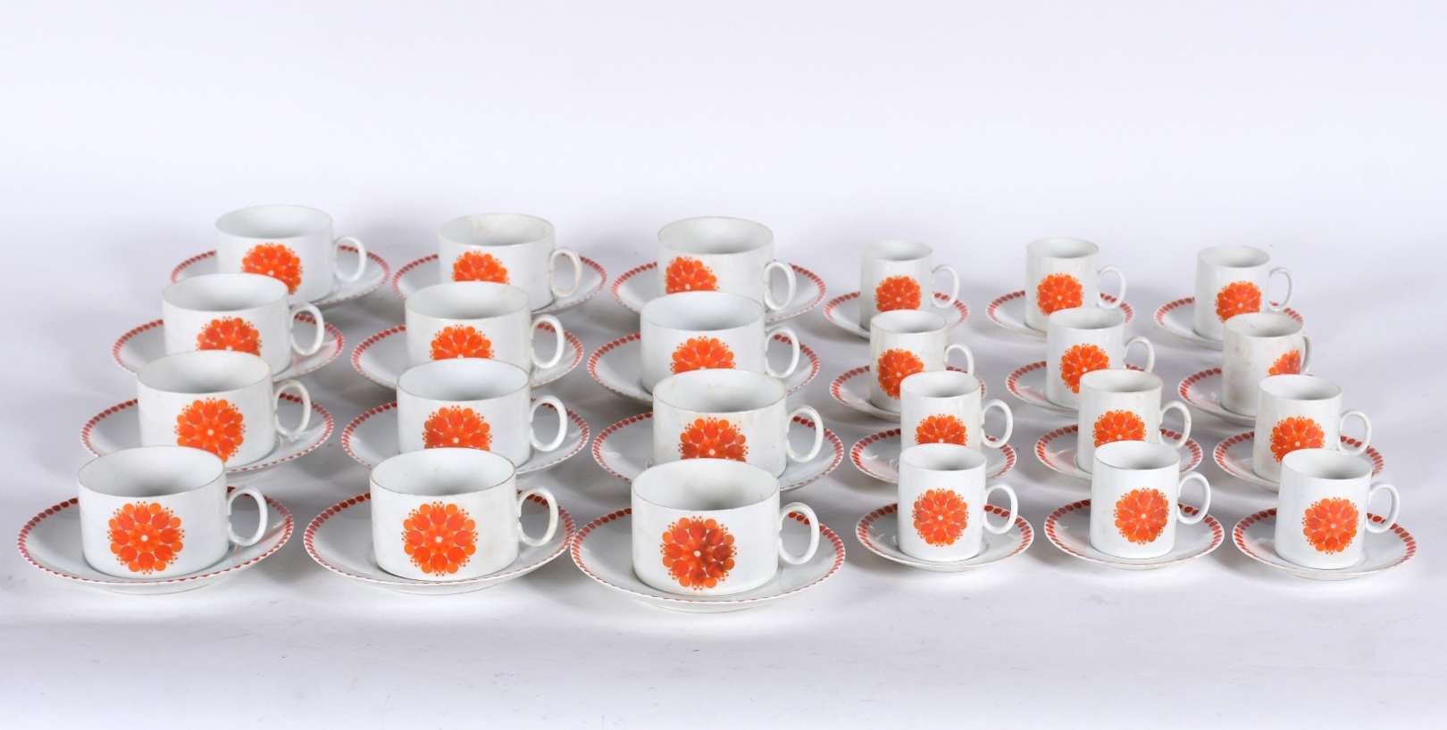 Aparelho de chá de porcelana Rozenthal composto de: 11 xícaras com pires, leiteira, bule e açucareiro. Total:14 peças.