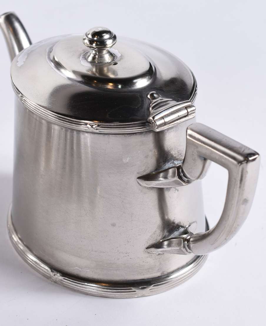 Elegante conjunto de gomil e bacia de metal espessurado a prata, detalhes em frisos na borda. Marca da Christofle no ...