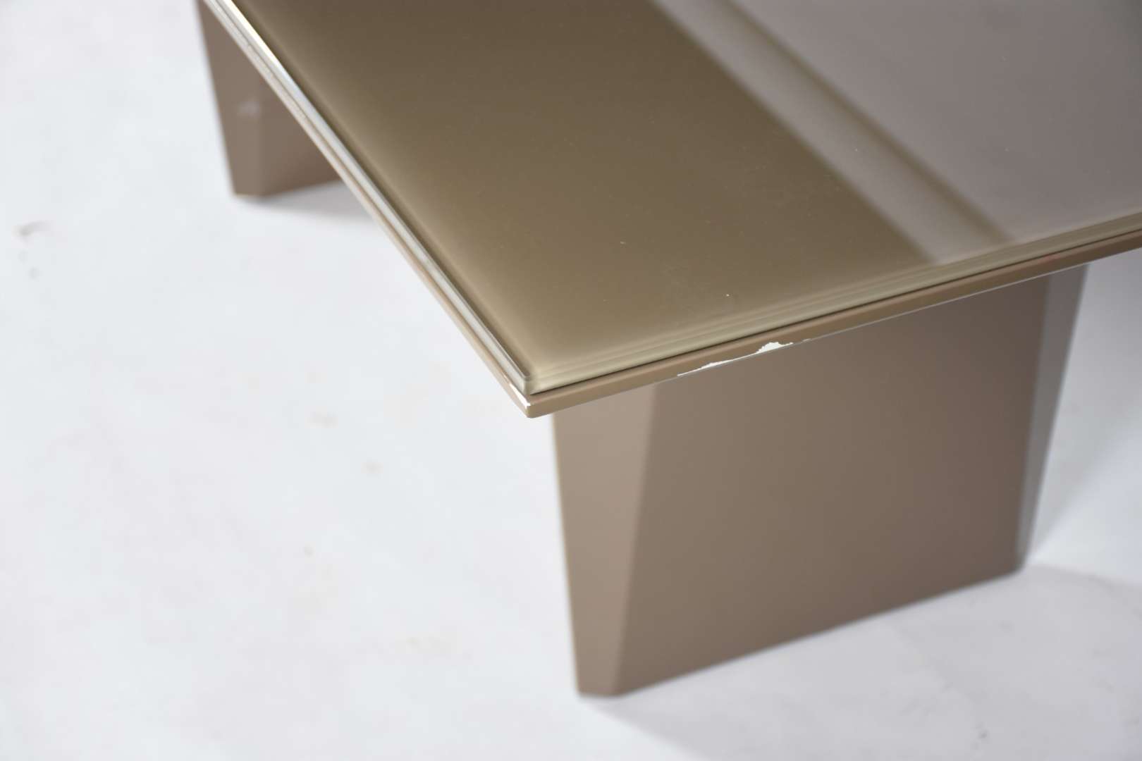 Par de mesas laterais de madeira nobre, tampos no feitio oitavado forrados com couro e tacheados, bases em balaústres...