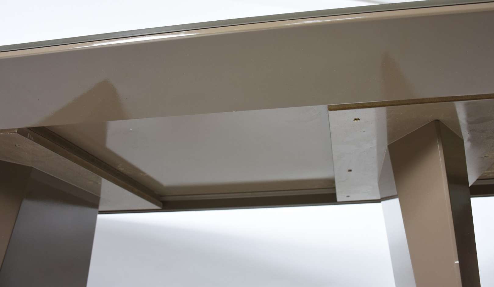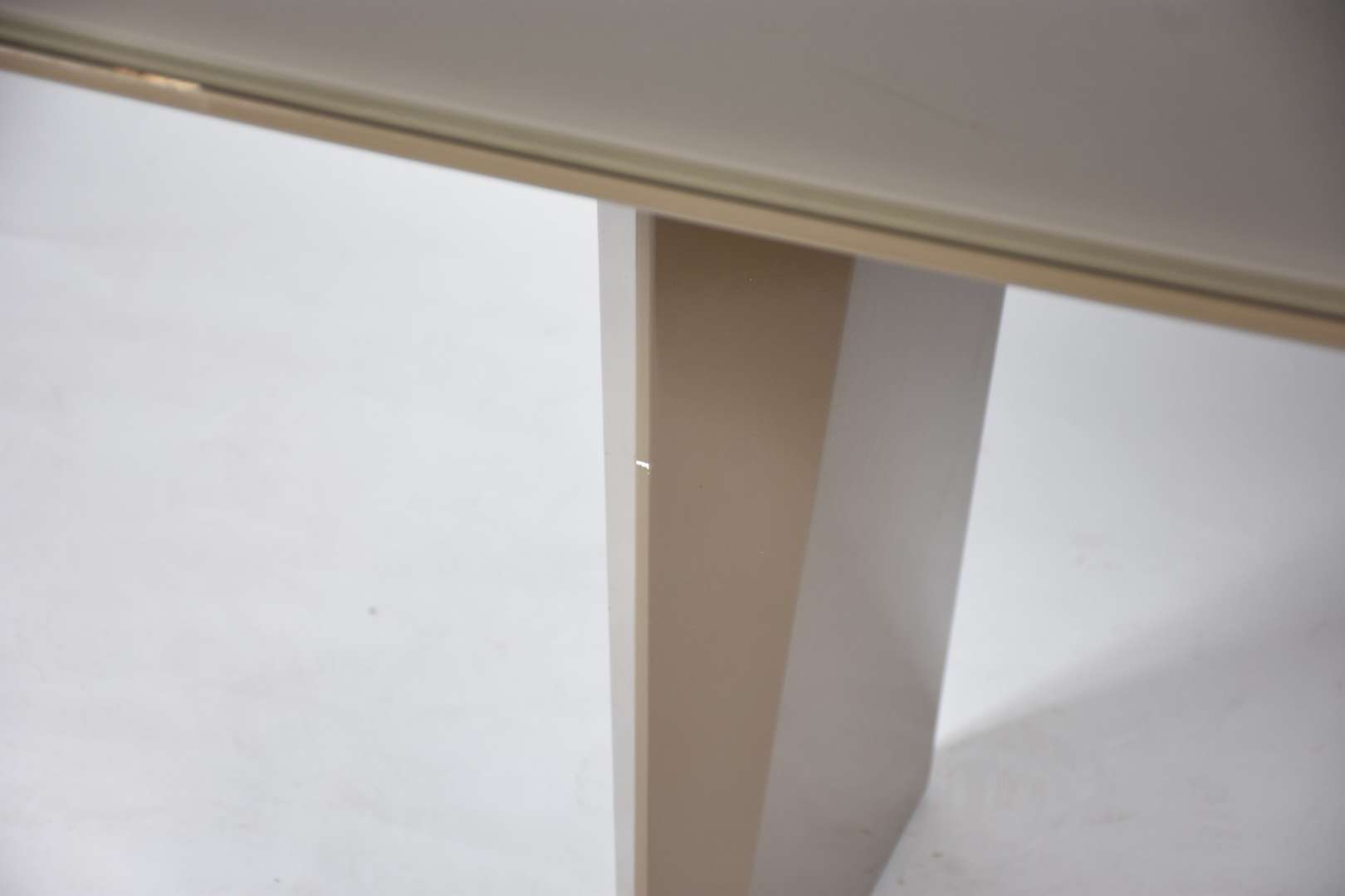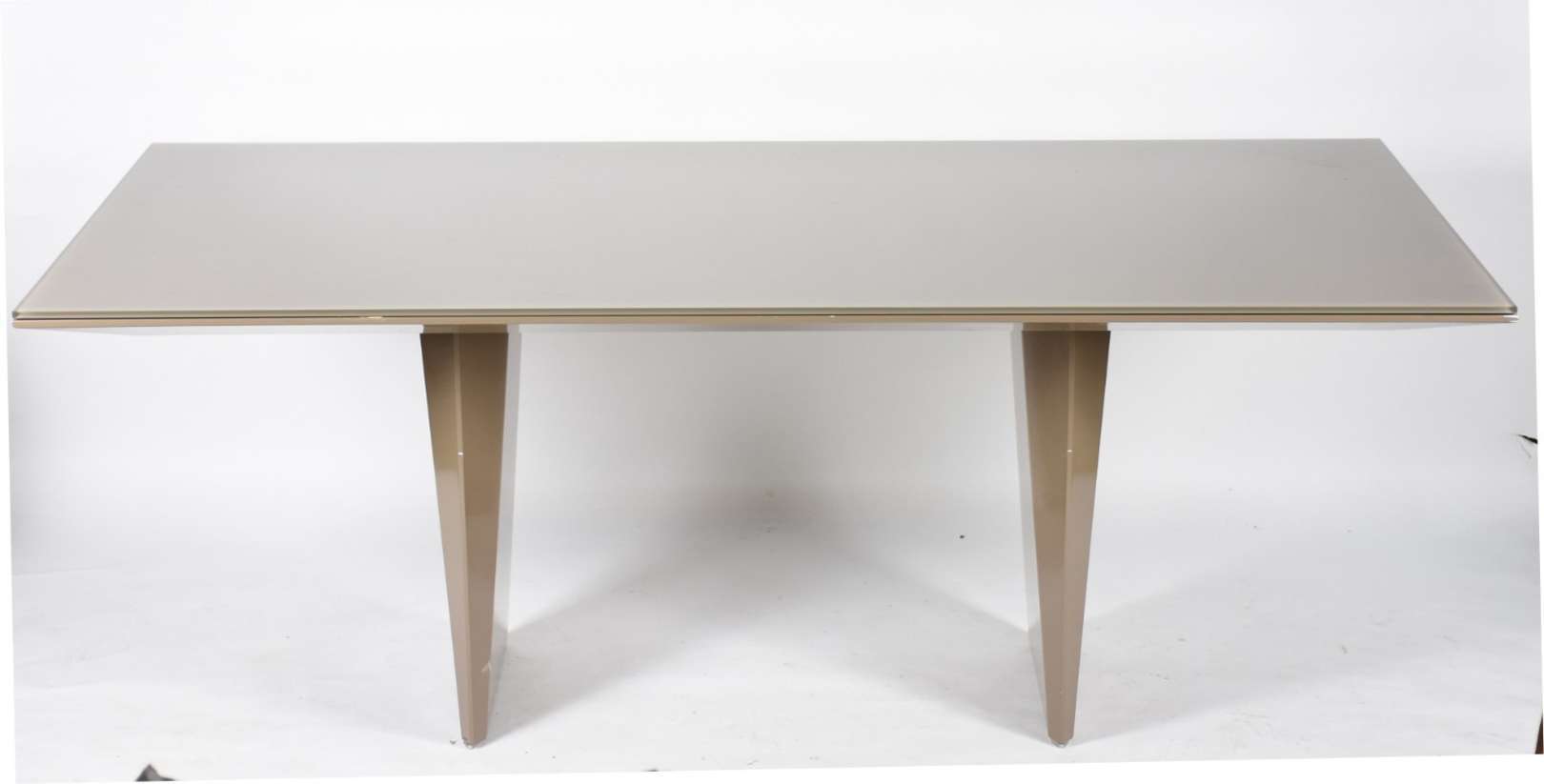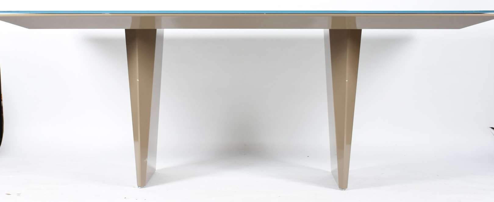 Mesa de jantar de madeira nobre feitio redondo sobre coluna quadrangular terminando em quatro pés na forma de "X", ac...