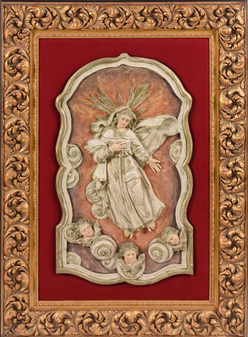 São João Batista menino - Belíssima Imagem de terracota policromada e realces dourados, com resplendor de prata (pequ...