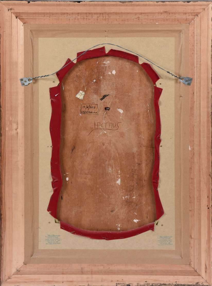 Sant'Anna Mestra - Antiga Imagem de madeira policromada, coroa e resplendor de prata (Partes rachadas e desgastes na...