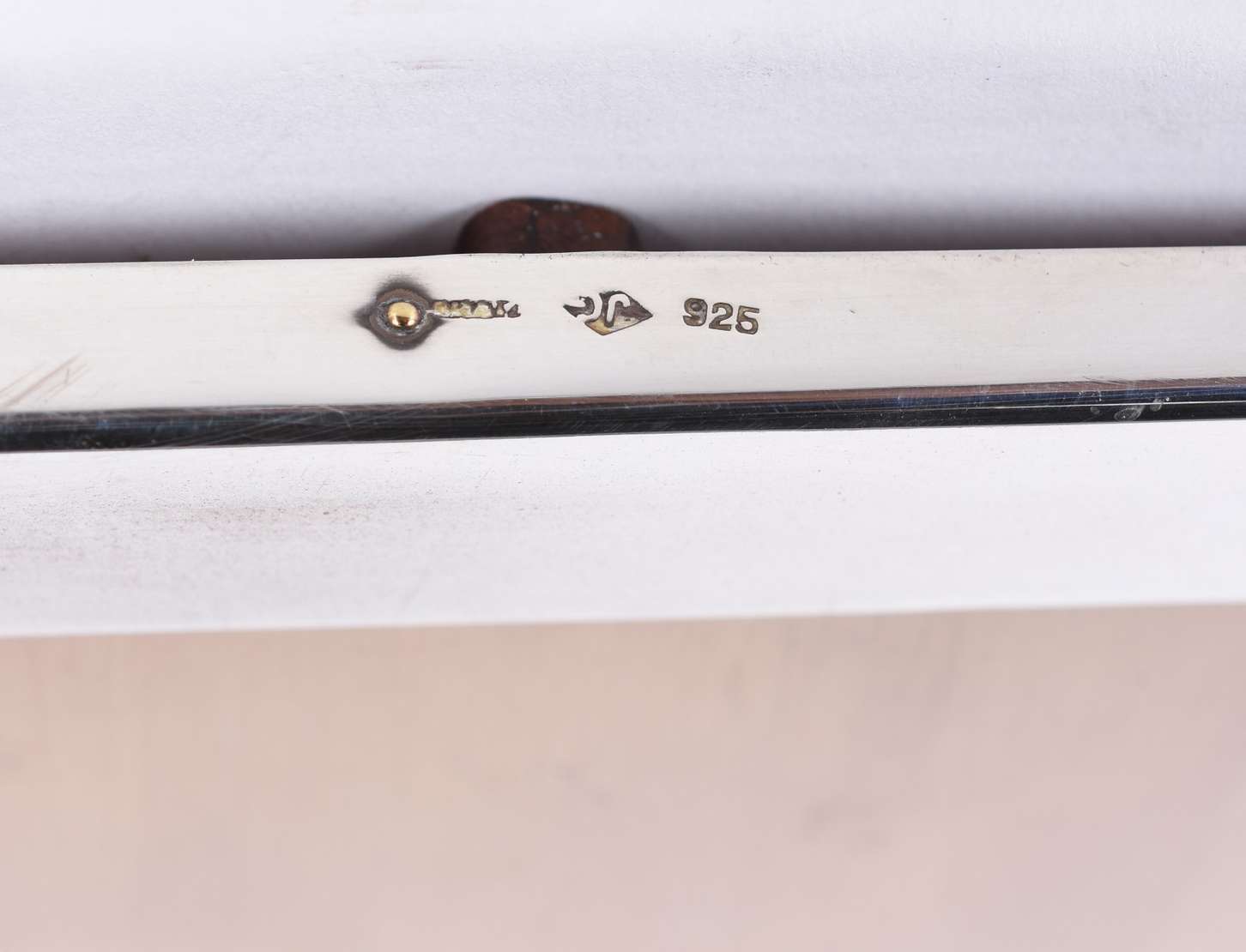 Cinco pequenas peças de prata de lei, sendo: cinzeiro, porta fósforos, lamparina(sem tampa), provador de vinho e par ...