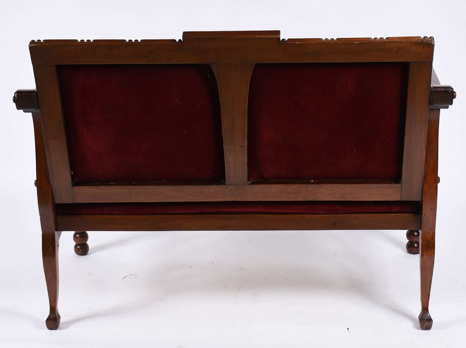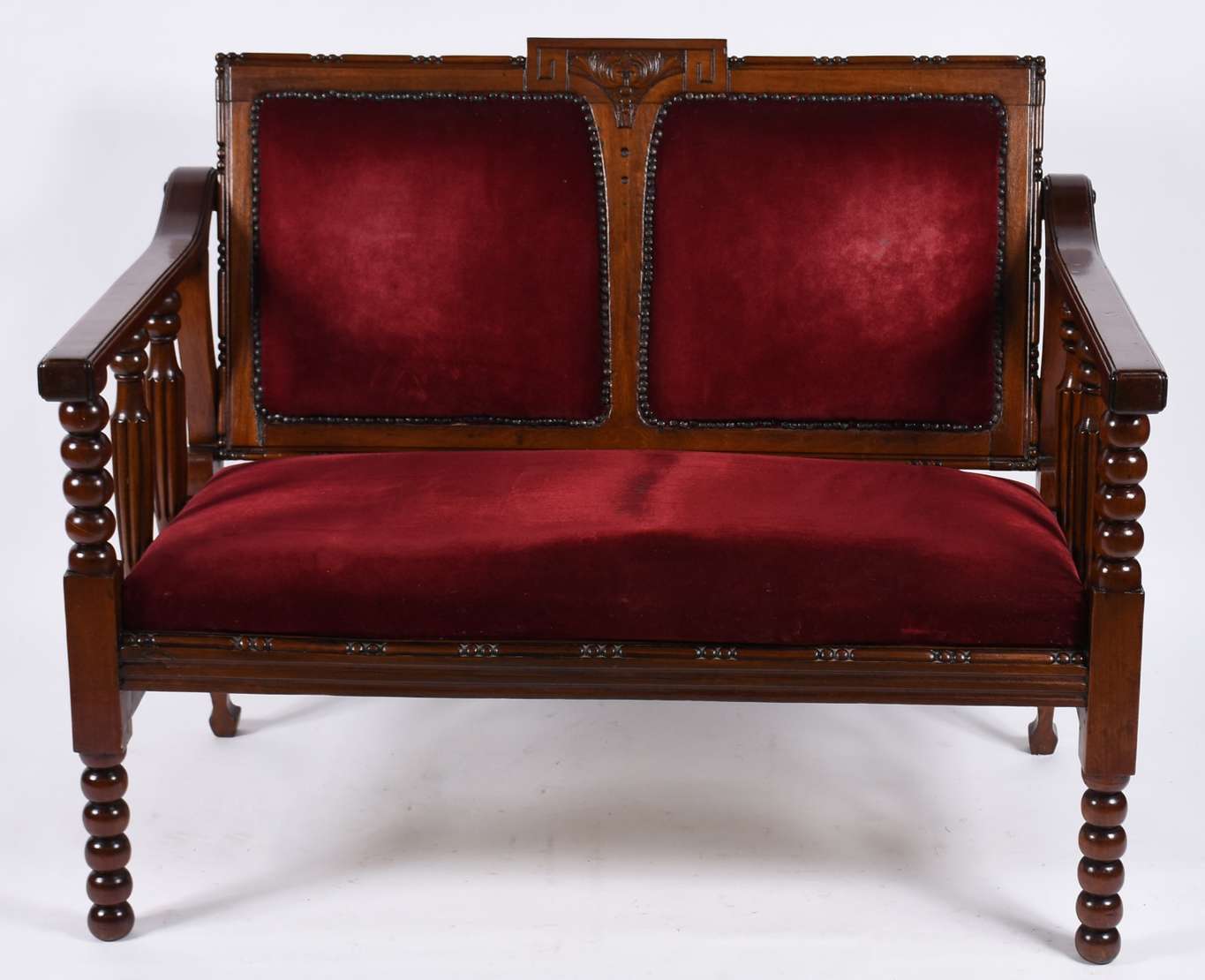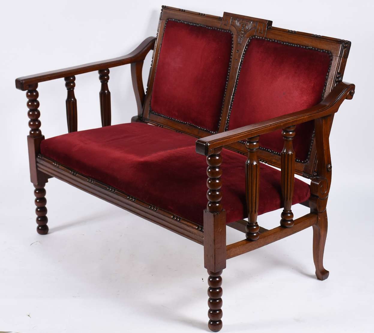 Par de antigas cadeiras de madeira nobre, braços e pernas frontais com torneados, encostos com medalhões encimados po...