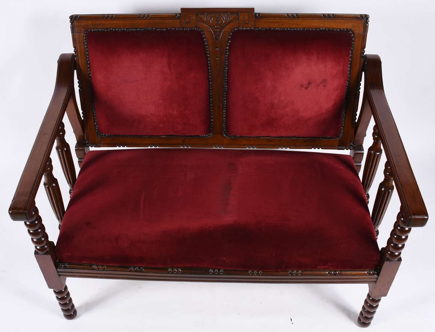 Conjunto com seis antigas cadeiras de madeira nobre, pernas frontais com torneados, encostos com medalhões encimados ...