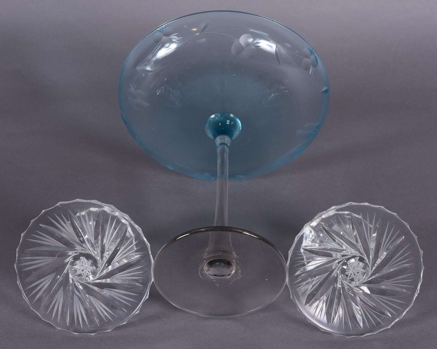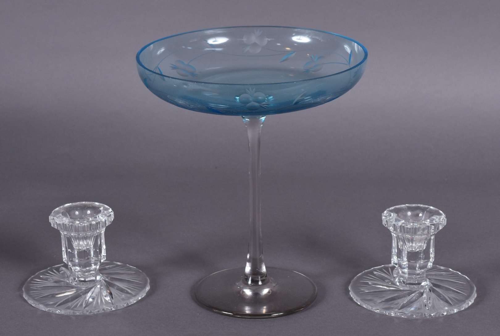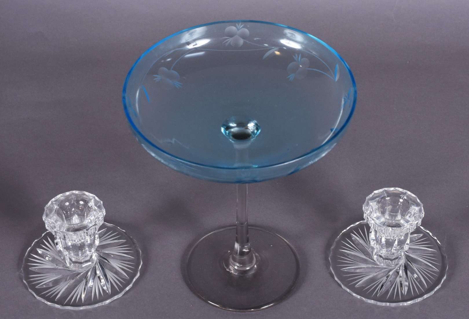 Diversas peças de cristal, sendo: caixa cigarreita com detalhes de metal dourado, 6 descansos de talher e prato possi...