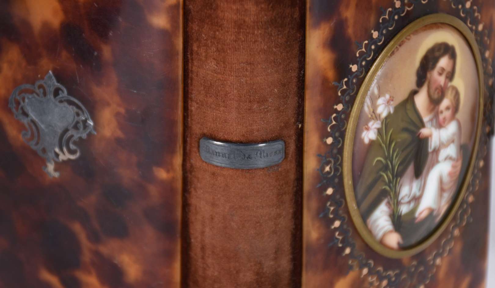 Três peças de marfim para escritório, sendo: espátula para abrir cartas (arma do arqueiro com pequeno quebrado), pena...