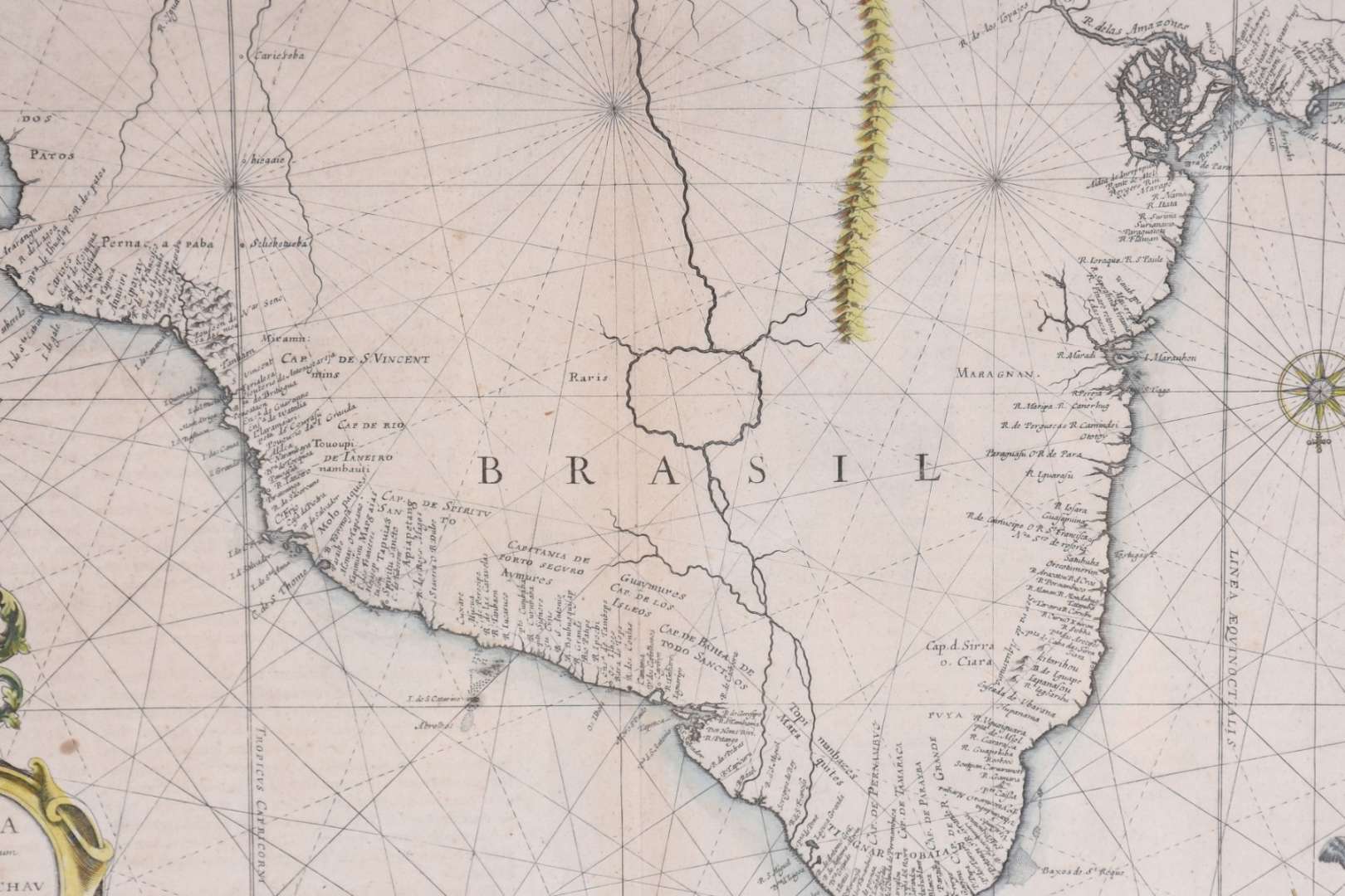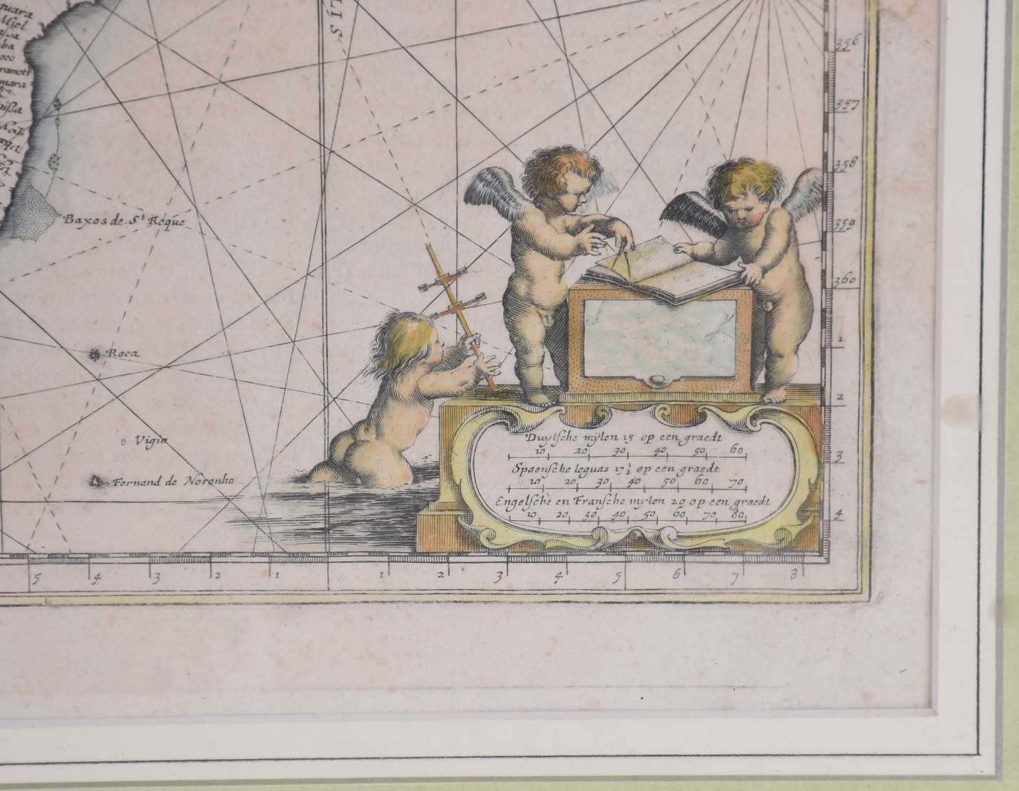 Leque com moldura de madeira e vidro.