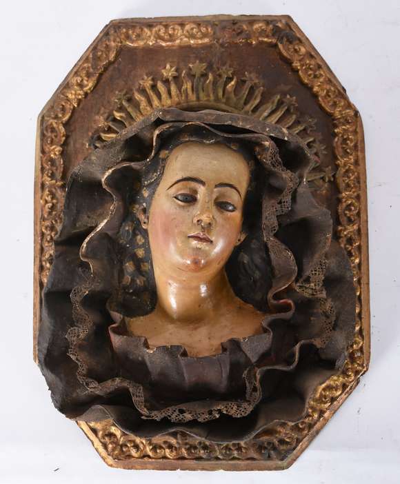 Nossa Senhora da Conceição - Imagem de madeira policromada com resquícios dourados, com coroa de prata. (desgastes do...