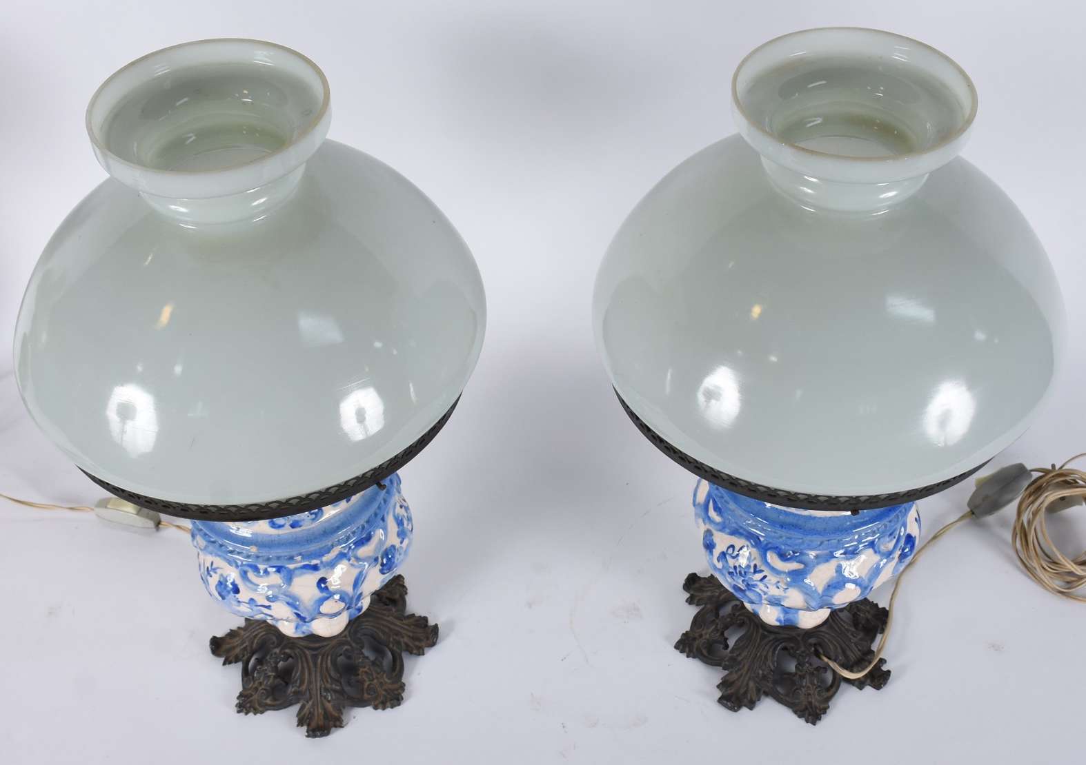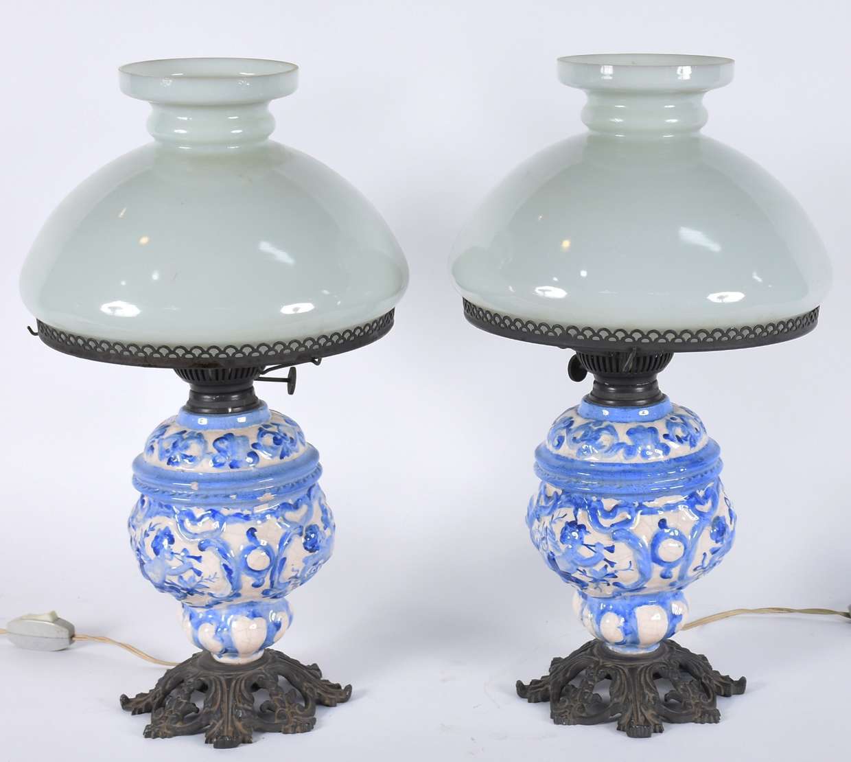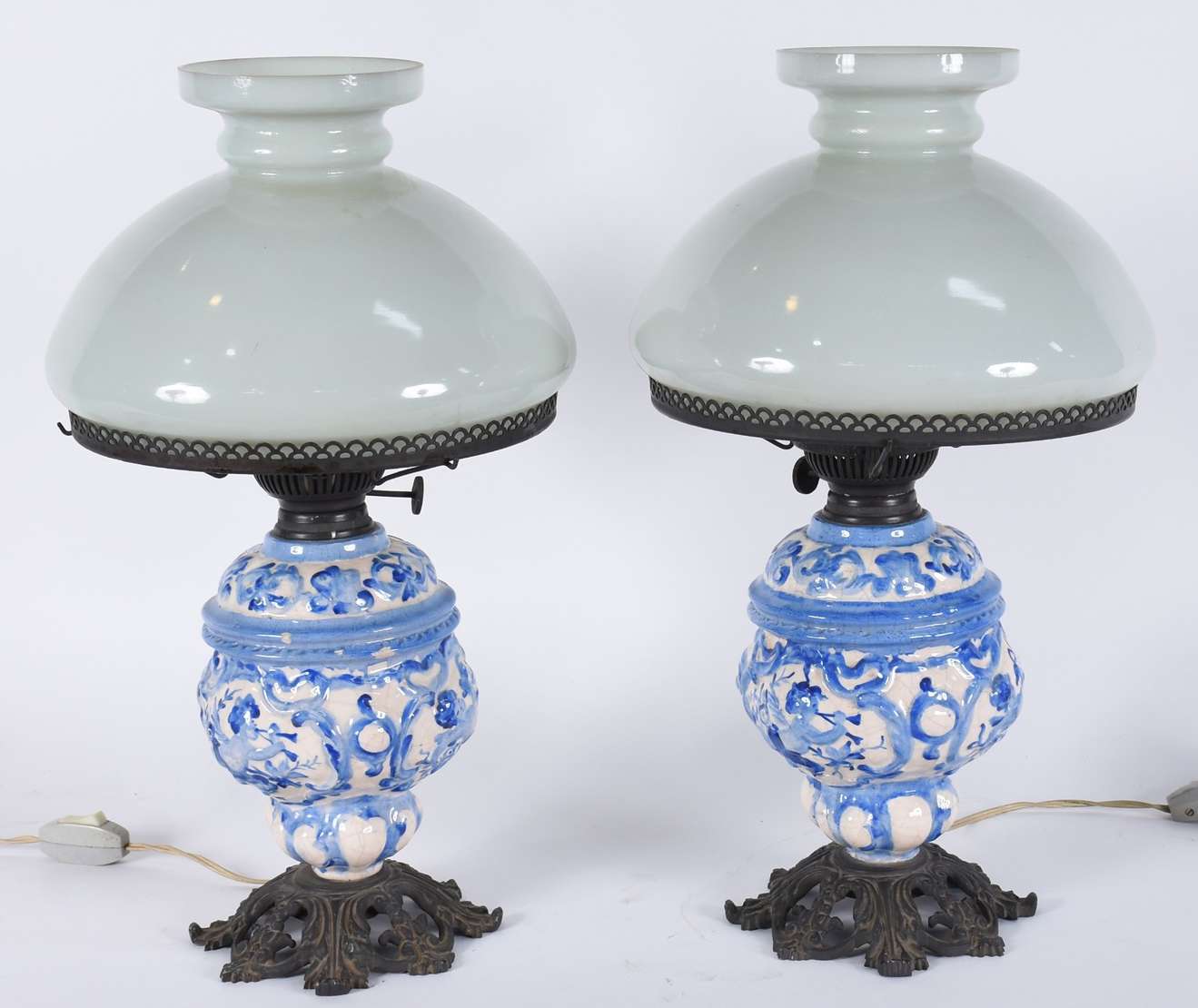 Par de antigos vasos de porcelana chinesa decorados com figuras em policromia, adaptados para Abatjour, um deles com ...
