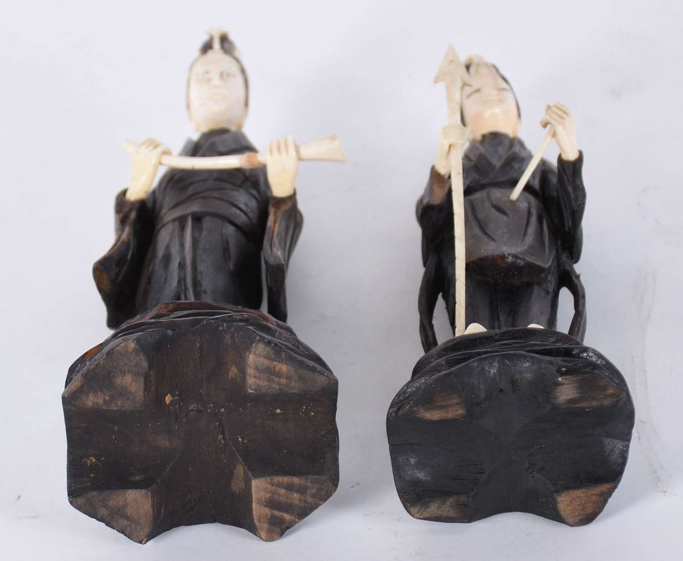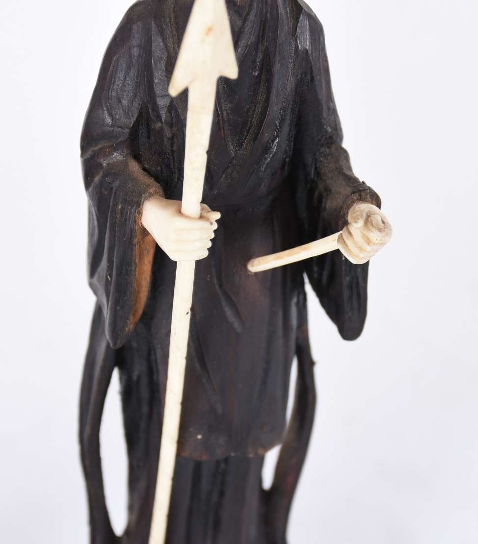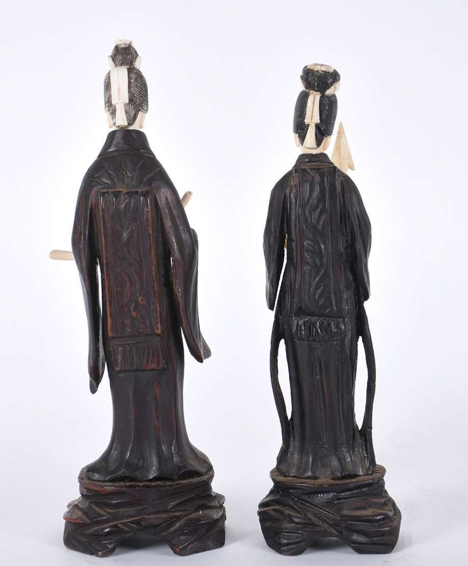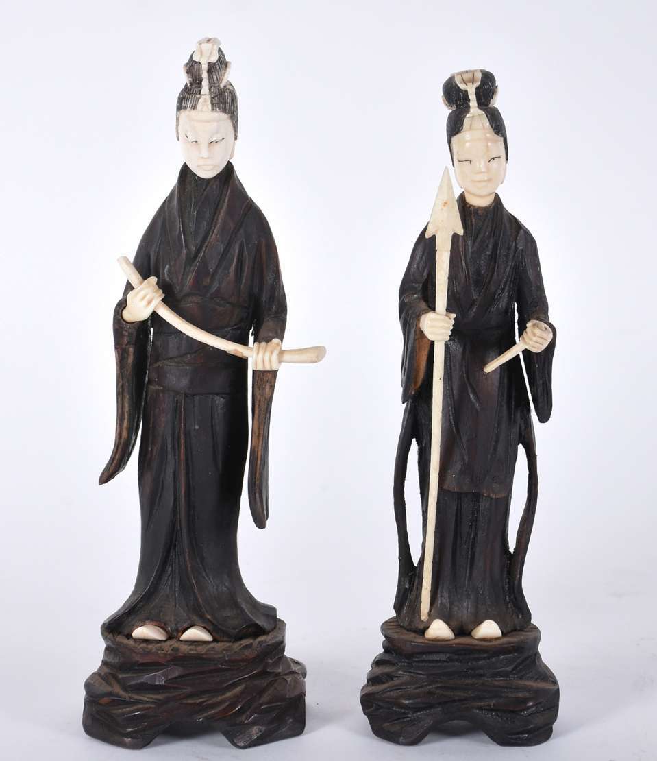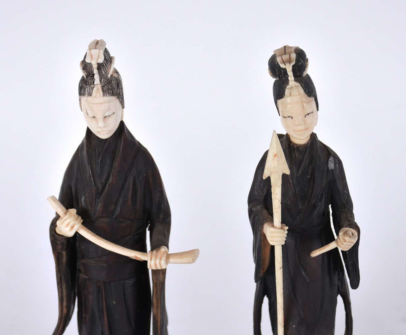 Escultura marfim representando Gueixa, pescoço colado. Base de madeira.