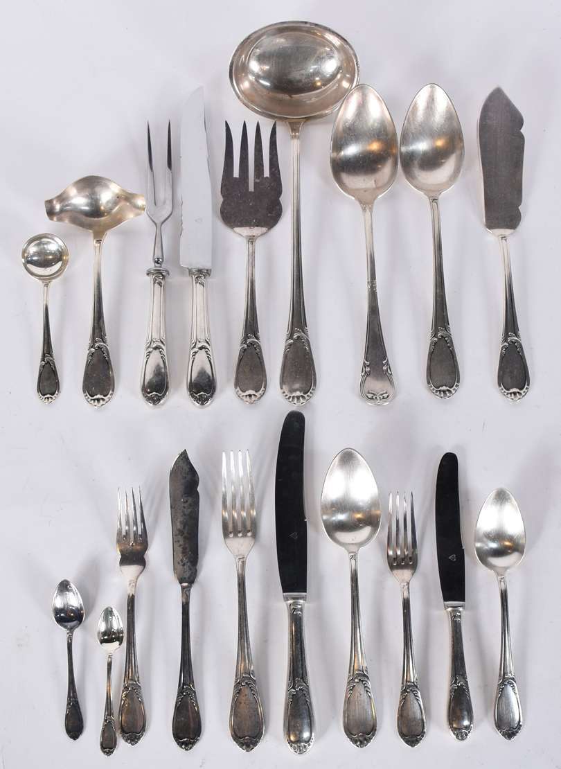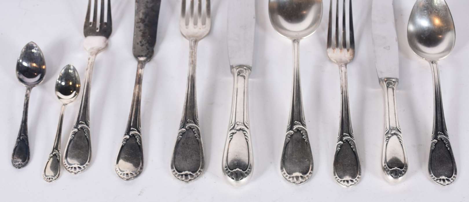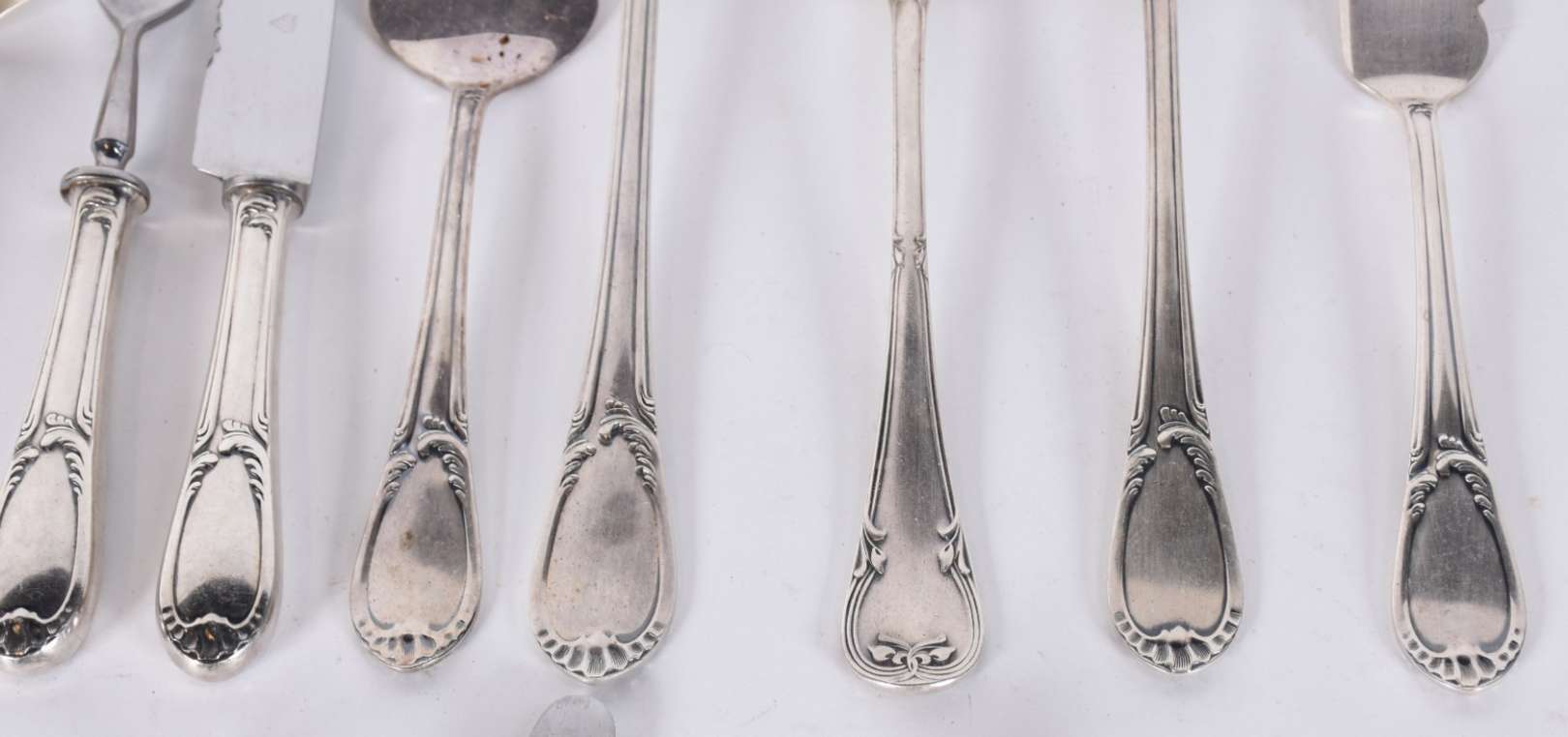 Conjunto de talheres com 14 peças com cabo prata. Peso total: 350 g (Por motivos de segurança a peça não se encontra ...