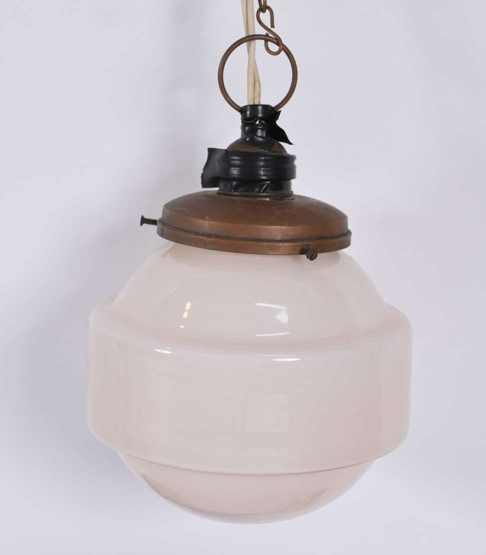 Luminária com estrutura em metal dourado e cúpula Art Deco em vidro.