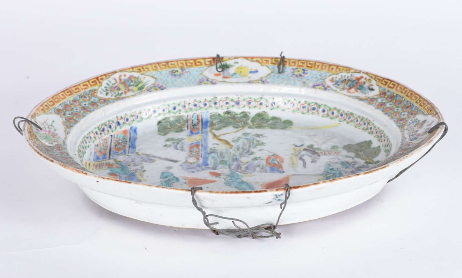 Centro de mesa Art Nouveau de metal prateado possivelmente WMF, decorado com flores e guirlandas em relevo, recipient...