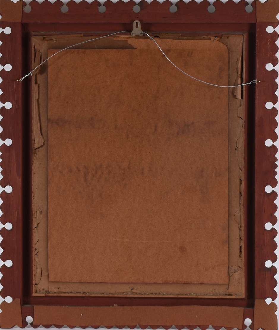 Lava pés chinês antigo em madeira, borda recortada com figura de pássaro, selo na base.