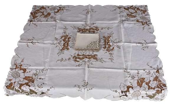 Toalha de chá de linho bordado da Ilha da Madeira com 6 guardanapos.