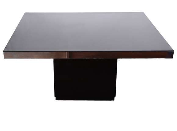 Mesa de jantar design moderno, tampo espelhado, base central no feitio quadrangular na cor preta (Retirada no apartam...