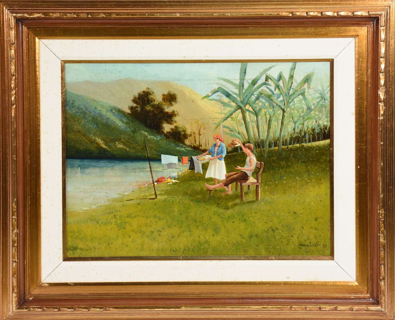 Par de placas ovais de porcelana com figura feminina com molduras douradas.