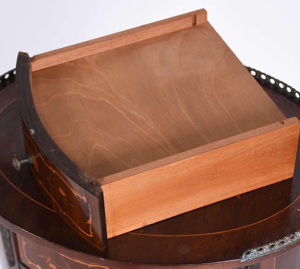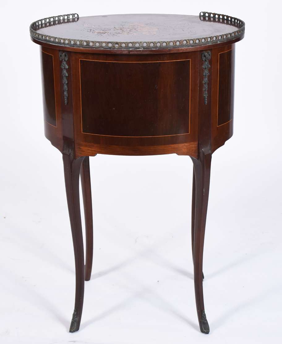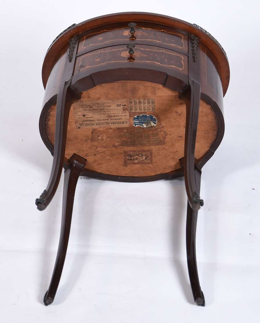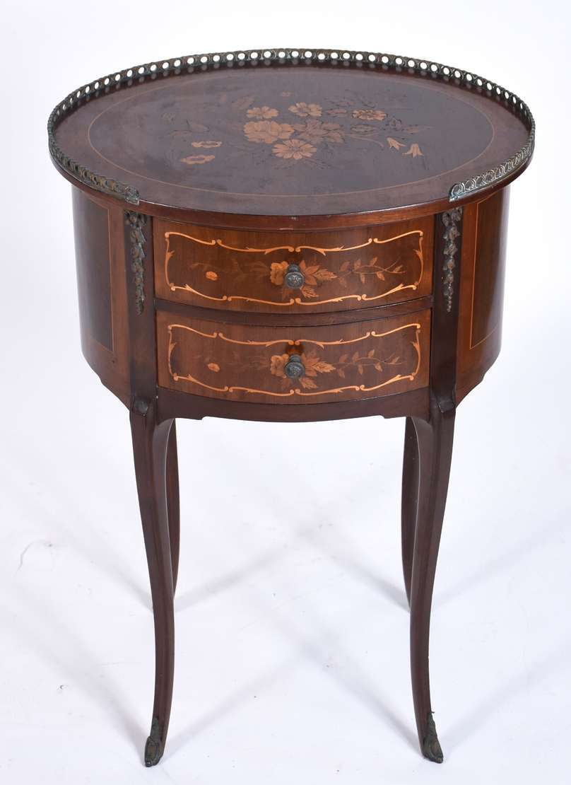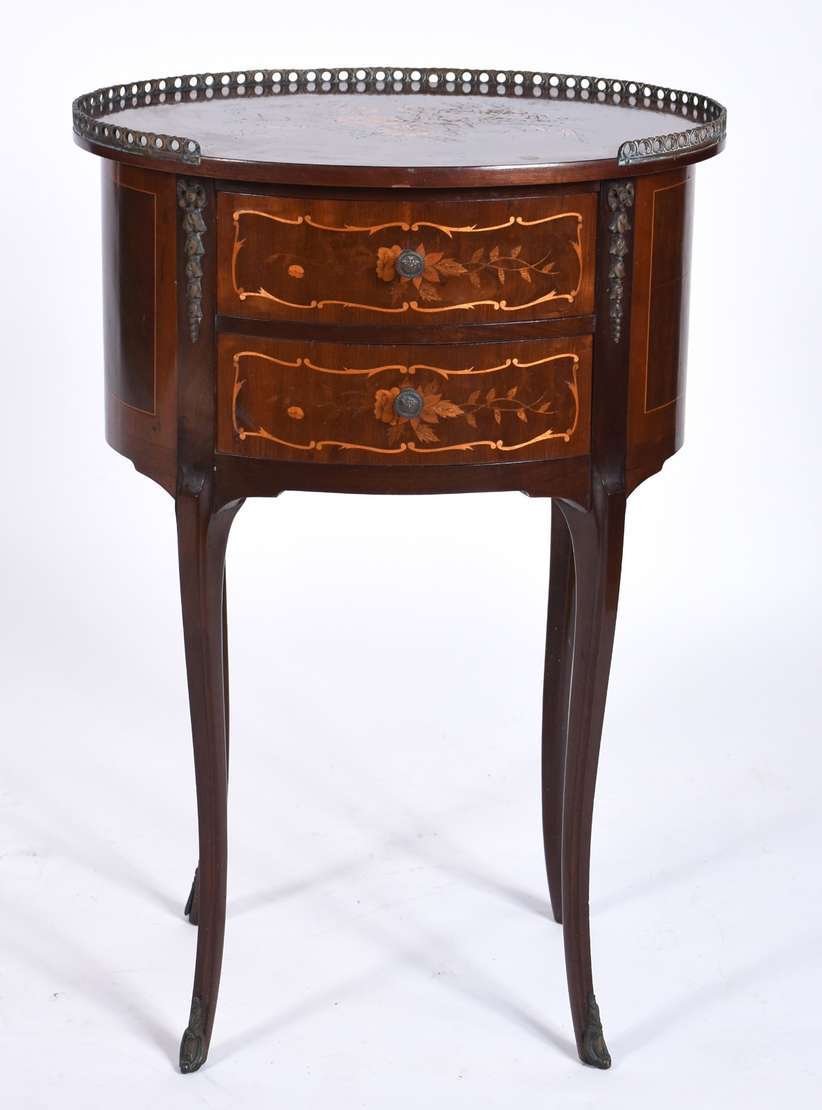 Penteadeira de mesa de madeira nobre com trabalhos em marqueterie, espelho articulado, uma gaveta.