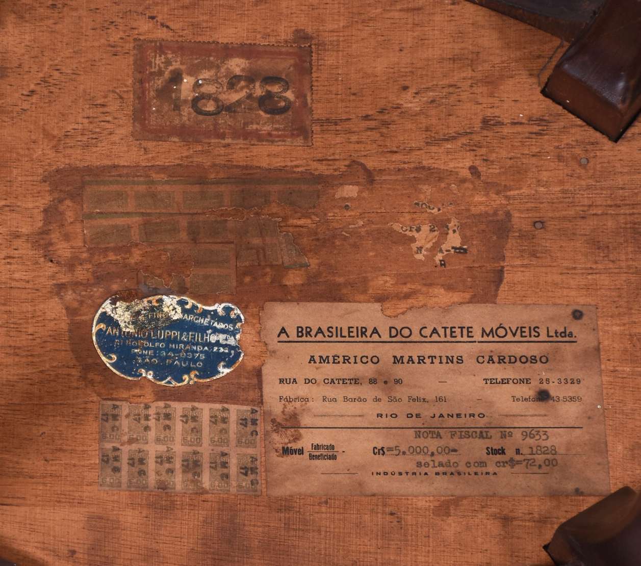 Mesa de jogo de madeira nobre, saia canelada, tampo dobrável com parte interna forrada de feltro verde, pernas longas...