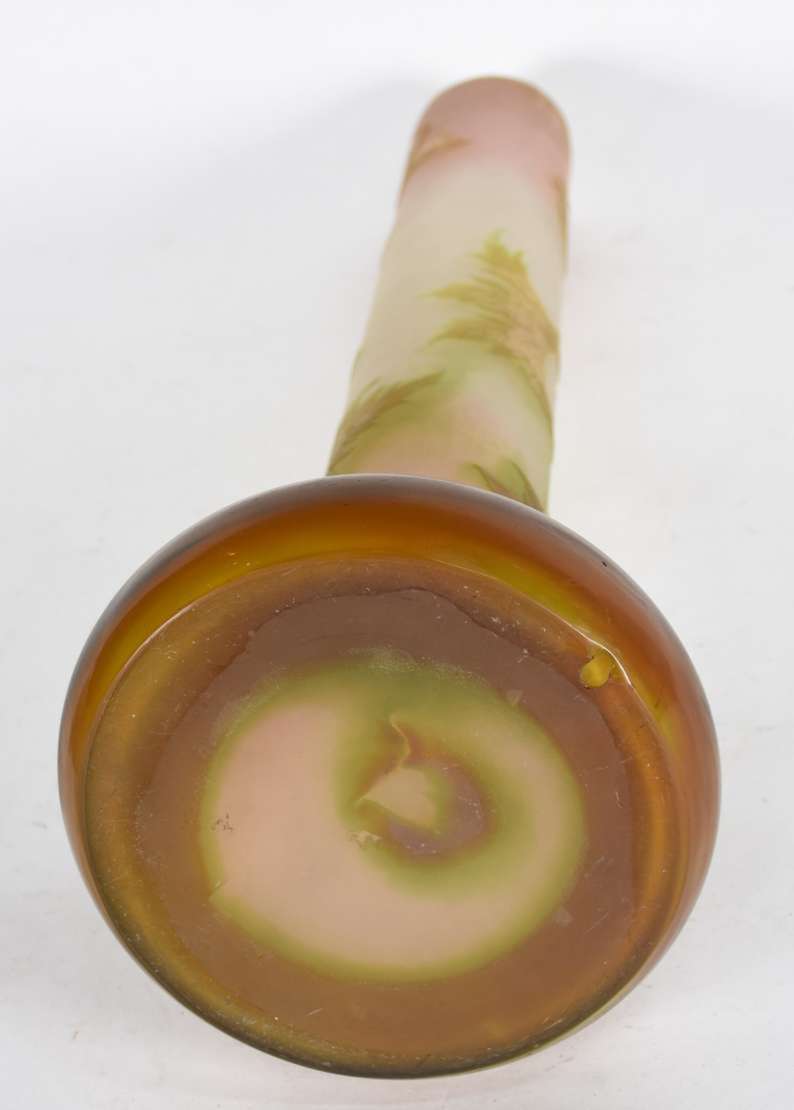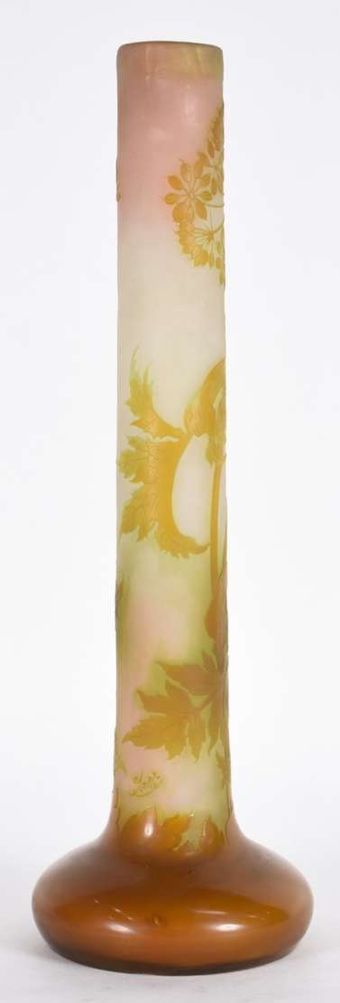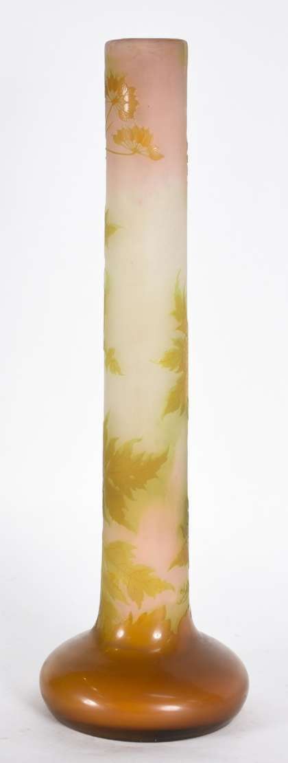 Vaso de opalina azul esverdeado com guirlandas douradas, base facetada.