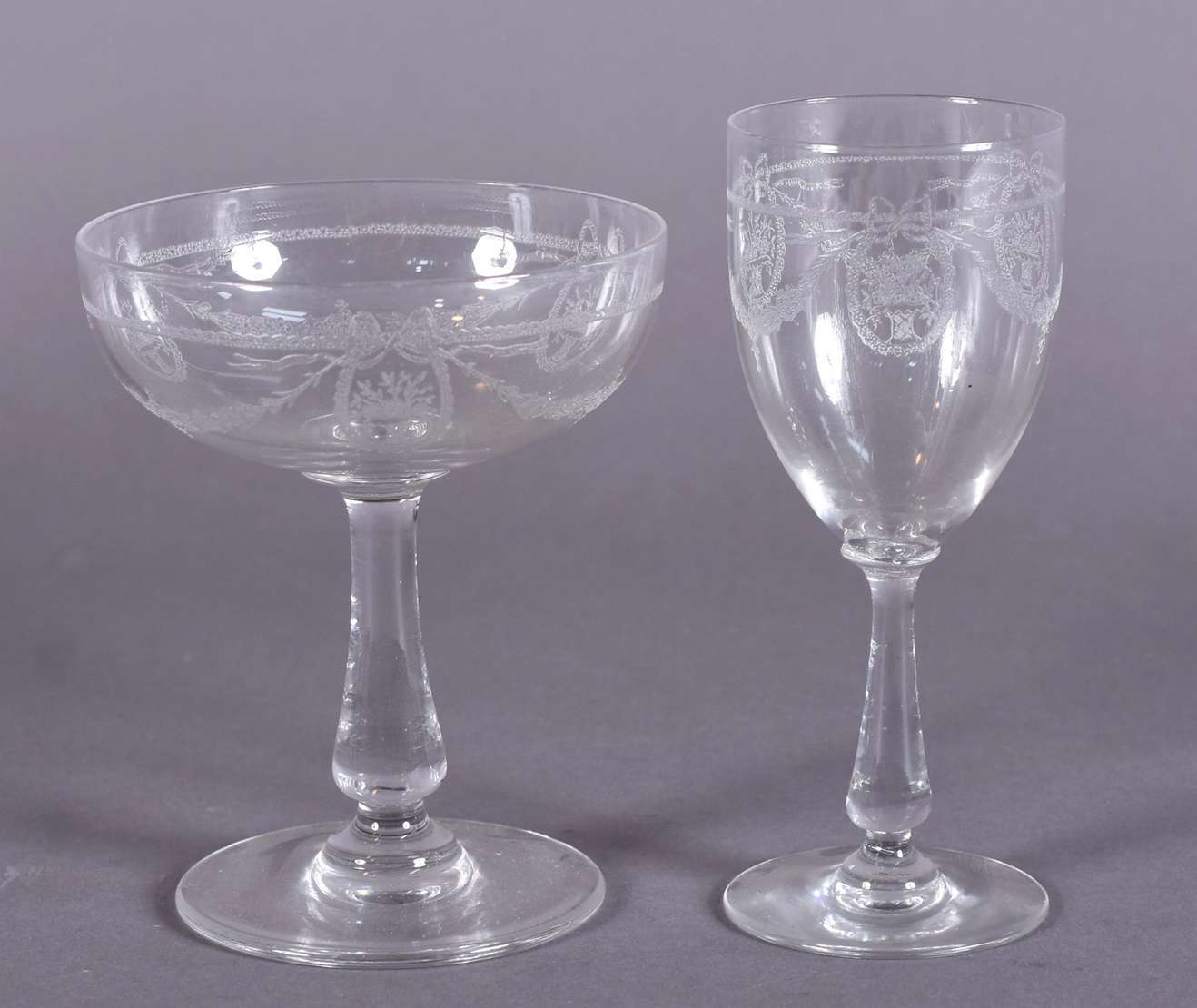 Lote arrematadoLote 257 - Ao vivo! Seis flutes para champagne de cristal tcheco com flores lapidadas, uma com pequeno trincando na borda. 25 cm
