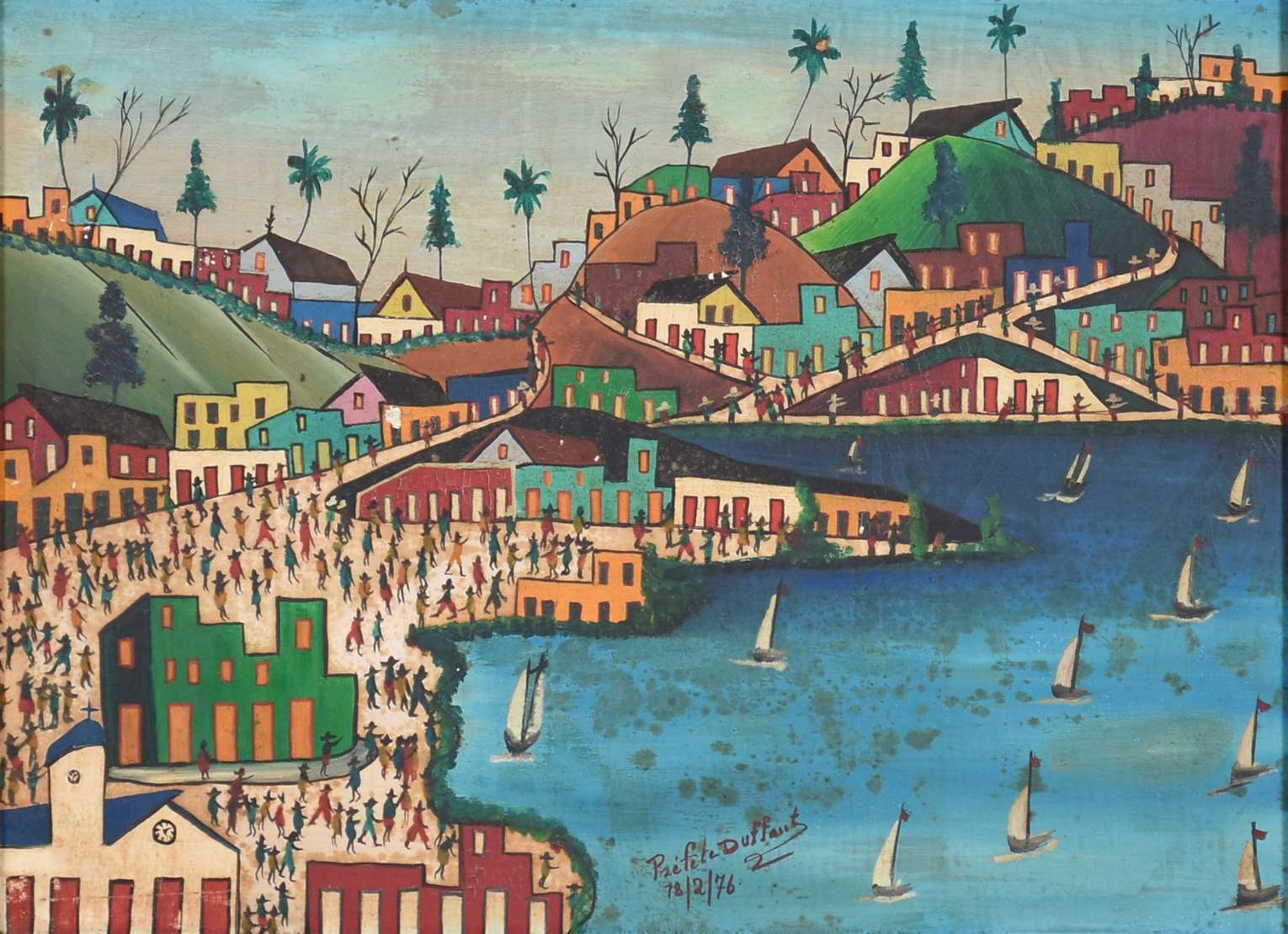 Óleo sobre eucatex - datado 1976, defeitos e fungos, precisando limpeza.