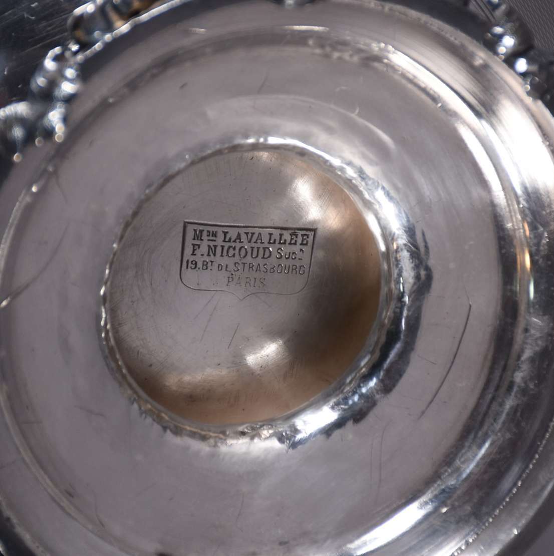 Xícara com pires de prata francesa cabeça de mercúrio , interior em vermeil. Peso da prata: 180 g. (Por motivos de se...