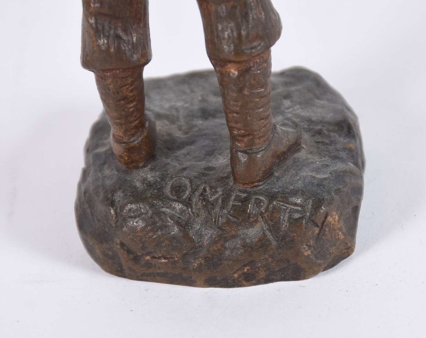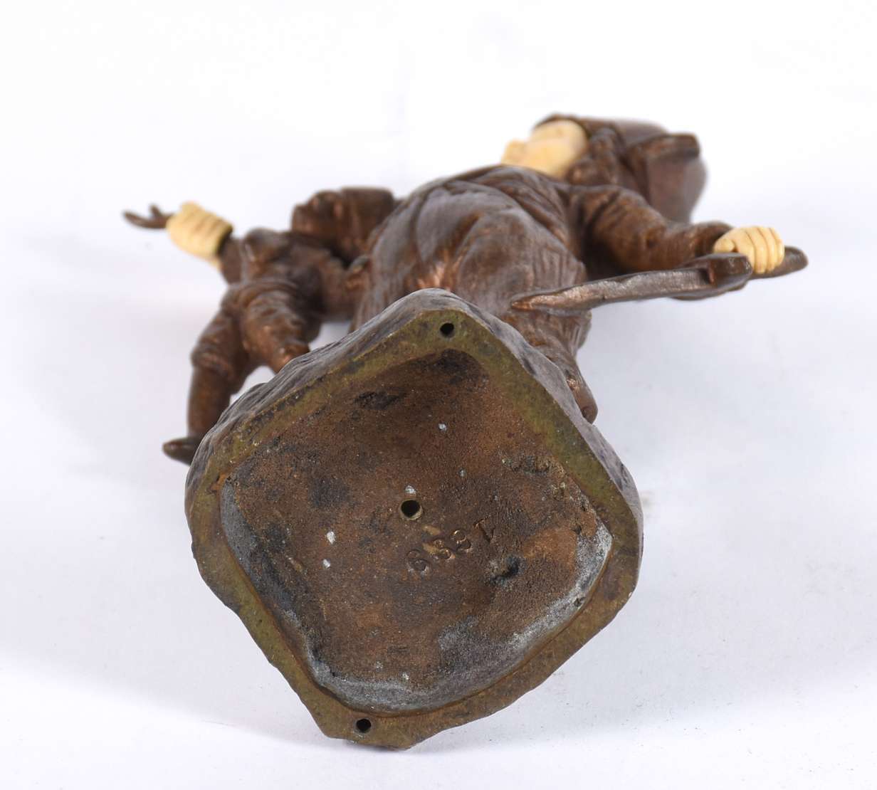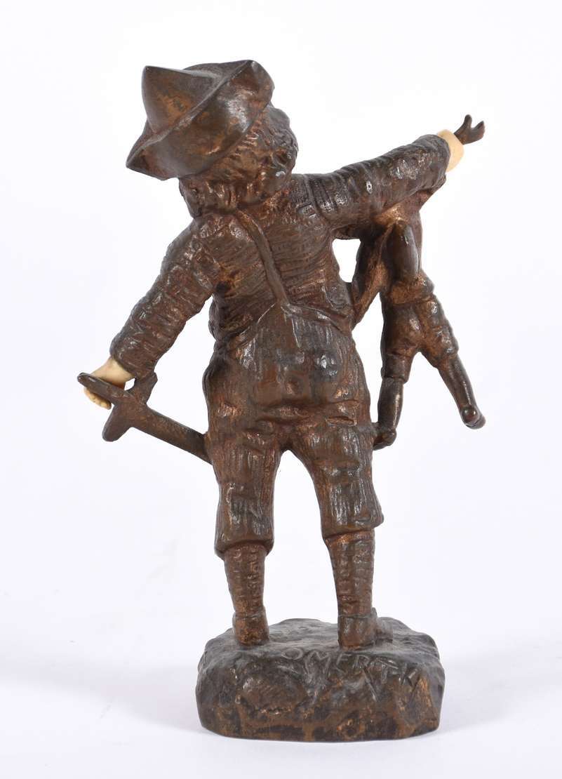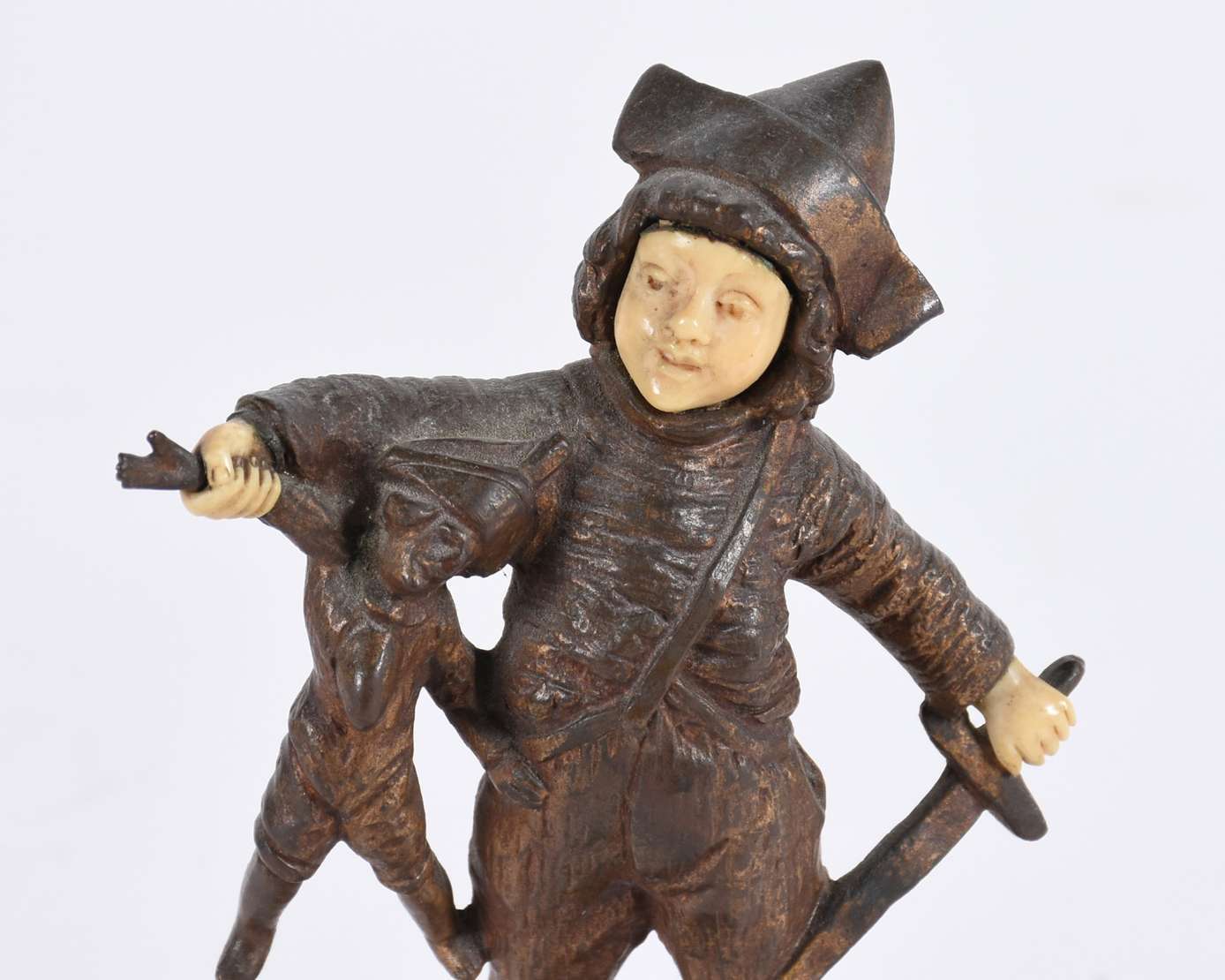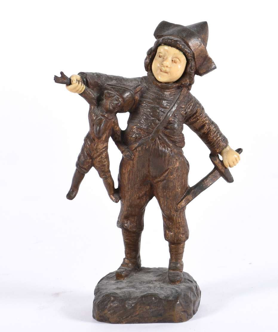 Escultura representando "Bebê com gatinho" de biscuit alemão policromado. Marcado na base.